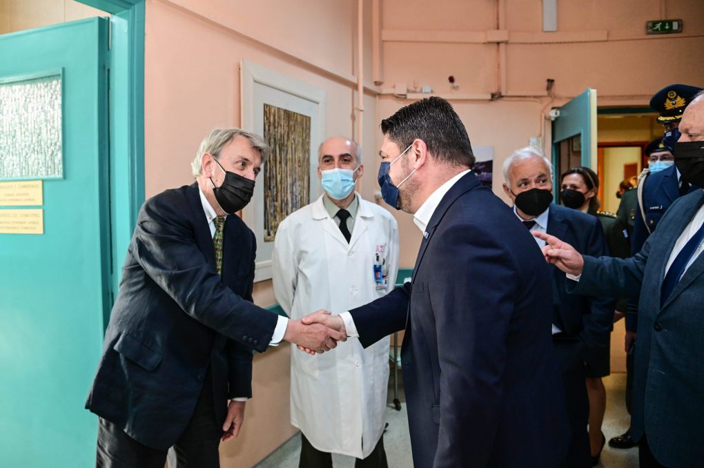 In the context of the visit, the Deputy Minister of National Defence was briefed on the organisation, the operation, the work performed by the Hospital, as well as the challenges it faces. Afterwards, he toured the Medical Services, the ER Department, the Clinics, the Laboratories and the Diagnostic Departments, where he discussed with doctors, nurses and administrative