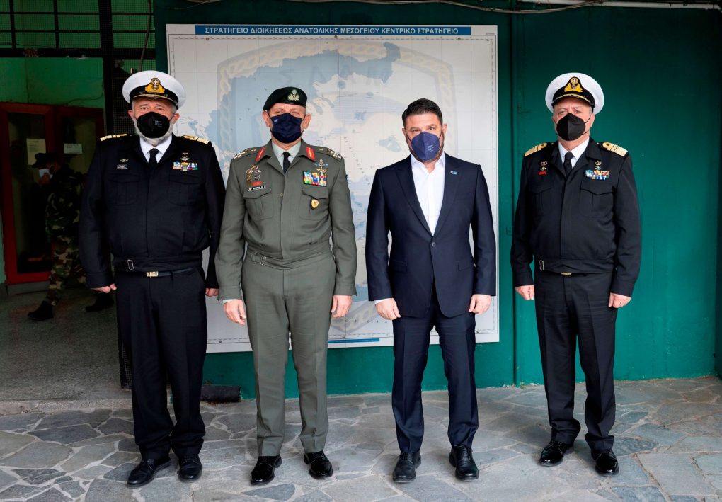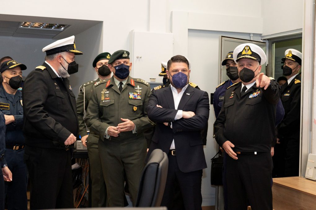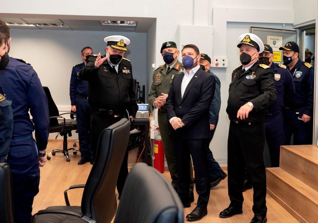 The Deputy Minister of National Defence Mr. Nikolaos Hardalias visited today, Wednesday 23 February 2022, the HQ of the Eastern Mediterranean Command and the Hellenic Fleet HQ Centre of Operations at Aghia Paraskevi – Attica, accompanied by the Chief/HNDGS General Konstantinos Floros, the Chief/HNGS Vice Admiral Stylianos Petrakis HN and the Chief of Hellenic Fleet Vice Admiral Panagiotis Lymperis HN.