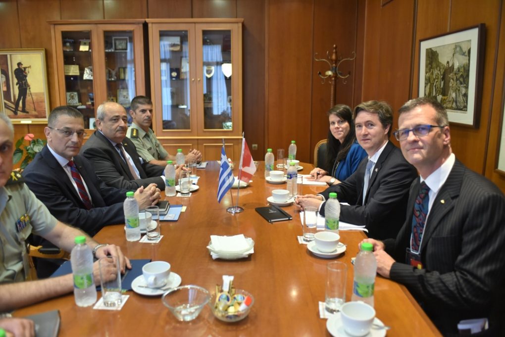 At their meeting, the two men discussed the bilateral defence cooperation among Greece and Canada, as well as the prospect of further enhancing it; they also exchanged ideas on matters of border security and on security and stability challenges in the East Mediterranean.