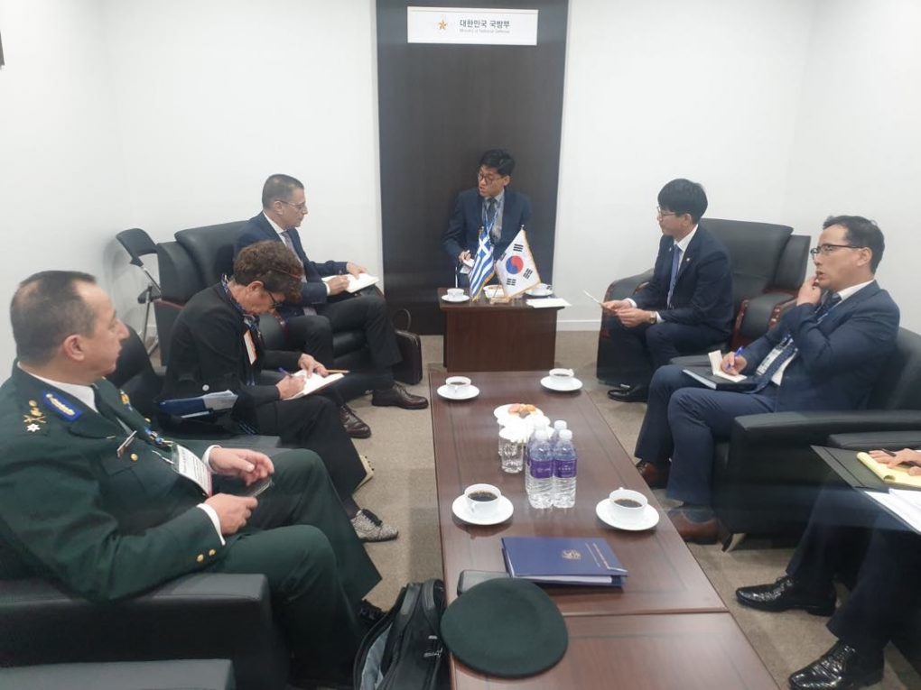 Bilateral meetings were held with the Minister of Supplies and Armaments of the Republic of Korea Wang Jung-Hong, the Deputy Minister of National Defence of the Republic of Korea Park Jae-Min, while he had a business lunch with the Deputy Minister of Patriots and Veterans Affairs of the Republic of Korea Lee Byoung Goo. The issue of moving the Monument which is dedicated to the Greek Expeditionary Force, for its contribution to the Korean War, to a new proper location, was discussed along with the promotion of the Defence-Technical Cooperation through the signing of a pertinent Memorandum of Understanding (MoU), which has been pending since 2018, as well as other issues of mutual interest.