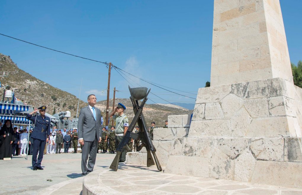 Later on, the Deputy Minister of National Defence visited the torpedo boat “KRISTALLIDES” at the headquarters of the Island Defence Command of Megisti, as well as the Surveillance Outposts at the islets of Strongili and Ro; at the latter, he also laid a wreath at the Monument of the Lady of Ro.