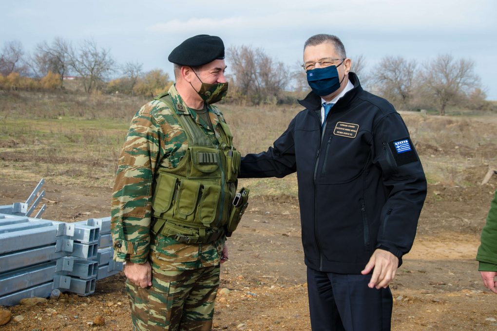 He visited Poros village in Evros and observed the construction works, in the context of the Armed Forces’ contribution, of a border deterrent obstacle (Fence).