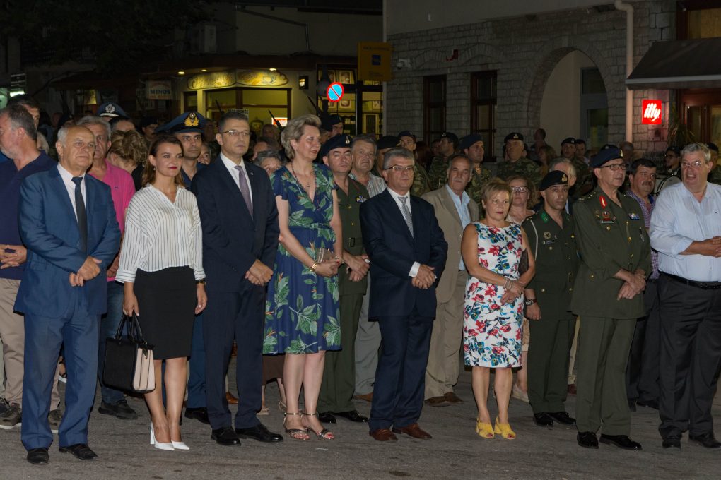 The Minister of National Defence then visited the Surveillance Outposts of DRYMADES and MOLYVDOSKEPASTOS on the Greek-Albanian border and dined at the latter. He discussed with the outpost garrisons, stressing the importance of Armed Forces presence in these sparsely populated border areas of our country.