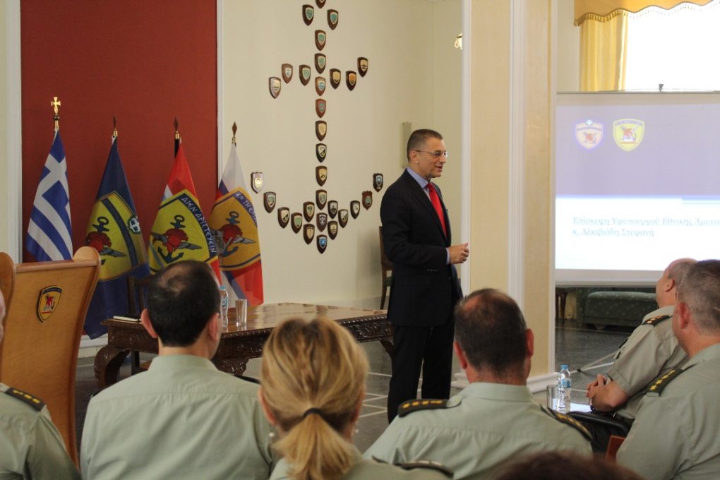 He also addressed the personnel, noting the particular emphasis that will be laid by the new political leadership of the Ministry of National Defence on the critical force multiplier of the Armed Forces that is personnel training, which is a pillar of the Ministry’s defence policy,followed by discussions and an exchange of views with the College and Academy Commands for undertaking innovative actions, preparing new curricula, and implementing new training methods for a substantial upgrade and comprehensive approach of the matter.