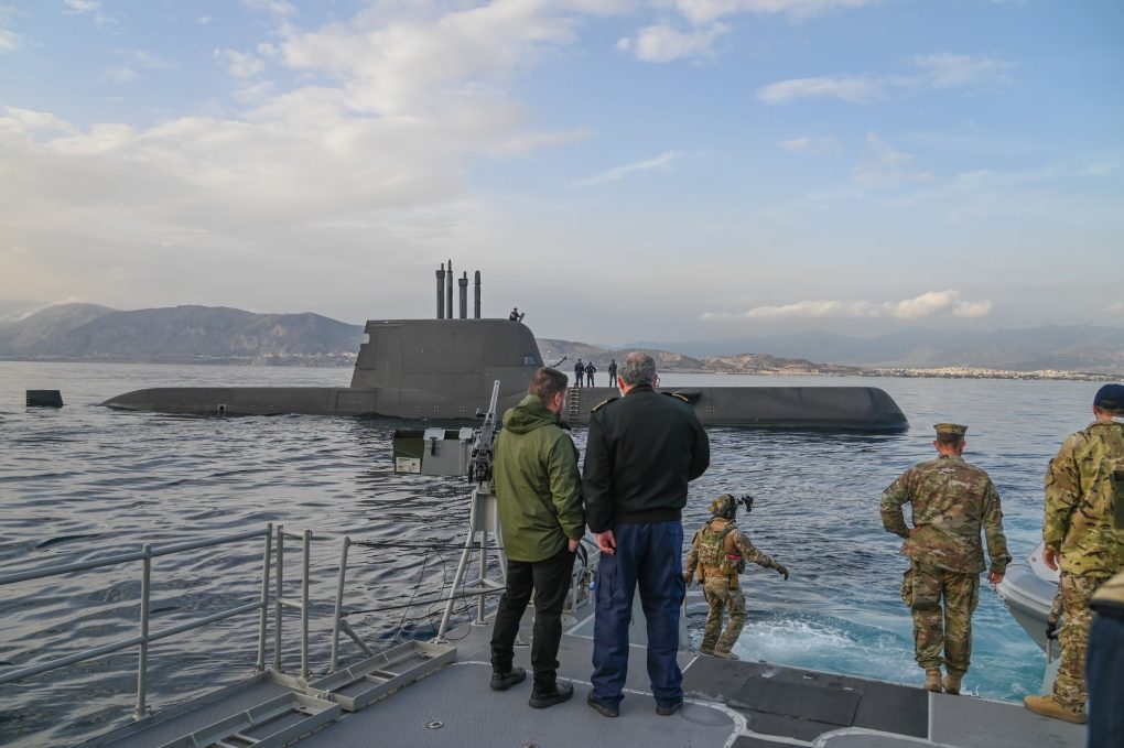 The Deputy Minister of National Defence was accompanied by the Chief of Fleet Vice Admiral Panagiotis Lymberis HN. The Commander of the Hellenic Submarines Command Captain Ioannis Stratogiannis HN and the Commander of the Underwater Demolition Command Captain Konstantinos Nassopoulos HN were also present, for the respective activities of their commands.