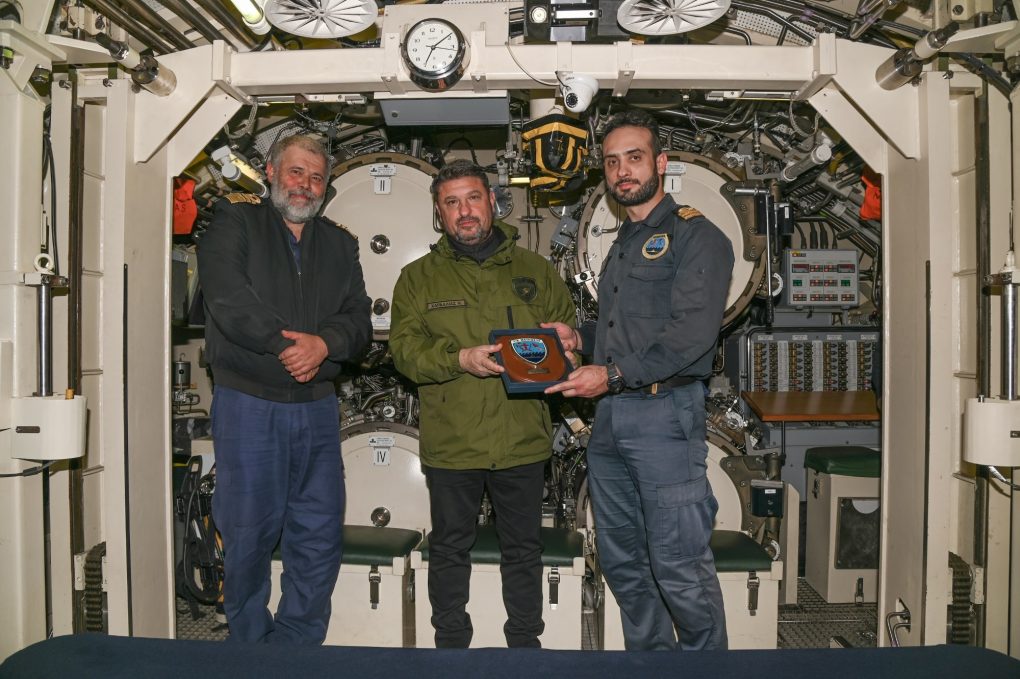 Next, he went to Submarine MATROZOS, where, during submergence, he observed torpedo fire exercise against surface target that simulated the Torpedo Sweeping Ship ARAHTHOS, in the context of “PERISCOPIO 19/22” scheduled exercise.