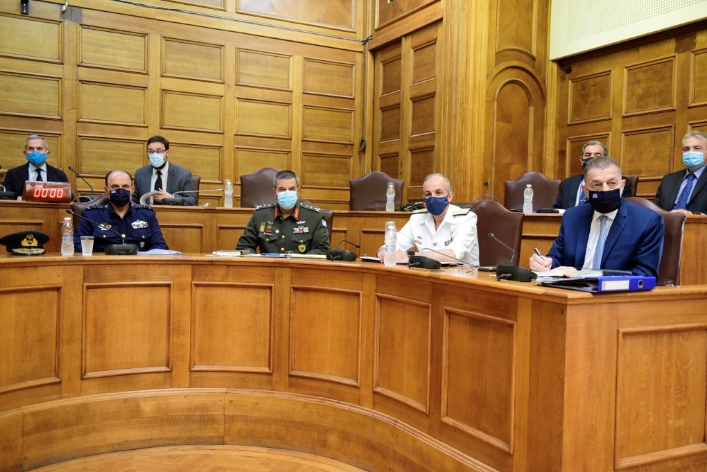 The session of the Special Permanent Committee, held at the Parliament’s Congress Hall, was attended by HNDGS Deputy Chief Vice-Admiral Ioannis Drymousis representing HNDGS Chief, HAFGS Chief Lieutenant General (AF) Georgios Blioumis, HAGS Chief Lieutenant General Charalambos Lalousis, and the Director General of the General Directorate of Defence Investments and Armaments Vice-Admiral (ret.) Aristeidis Alexopoulos.