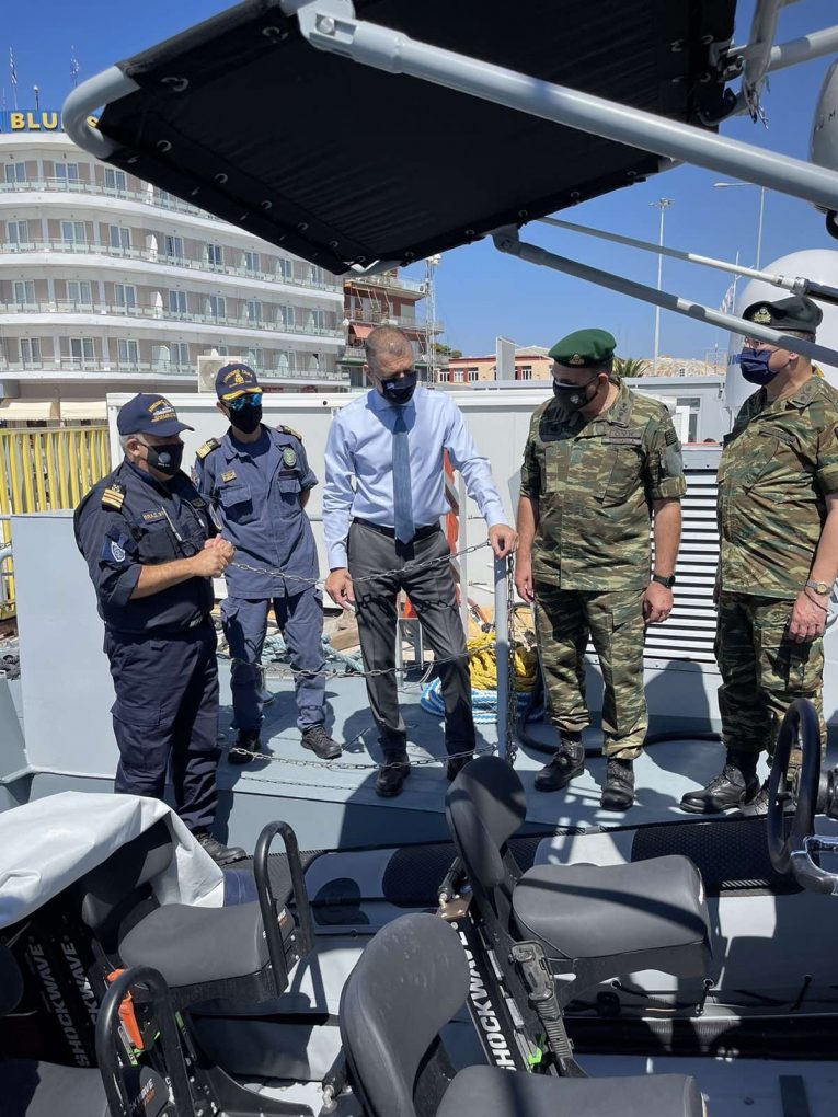 He supervised the surveillance and deterrence procedures at the borders onboard a Hellenic Coast Guard vessel and he also visited the Hellenic Police Surveillance Element of Nees Kydonies. Additionally, onboard the new Patrol Vessel of the Hellenic Coast Guard he was briefed upon its operational capabilities.