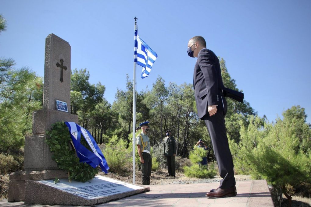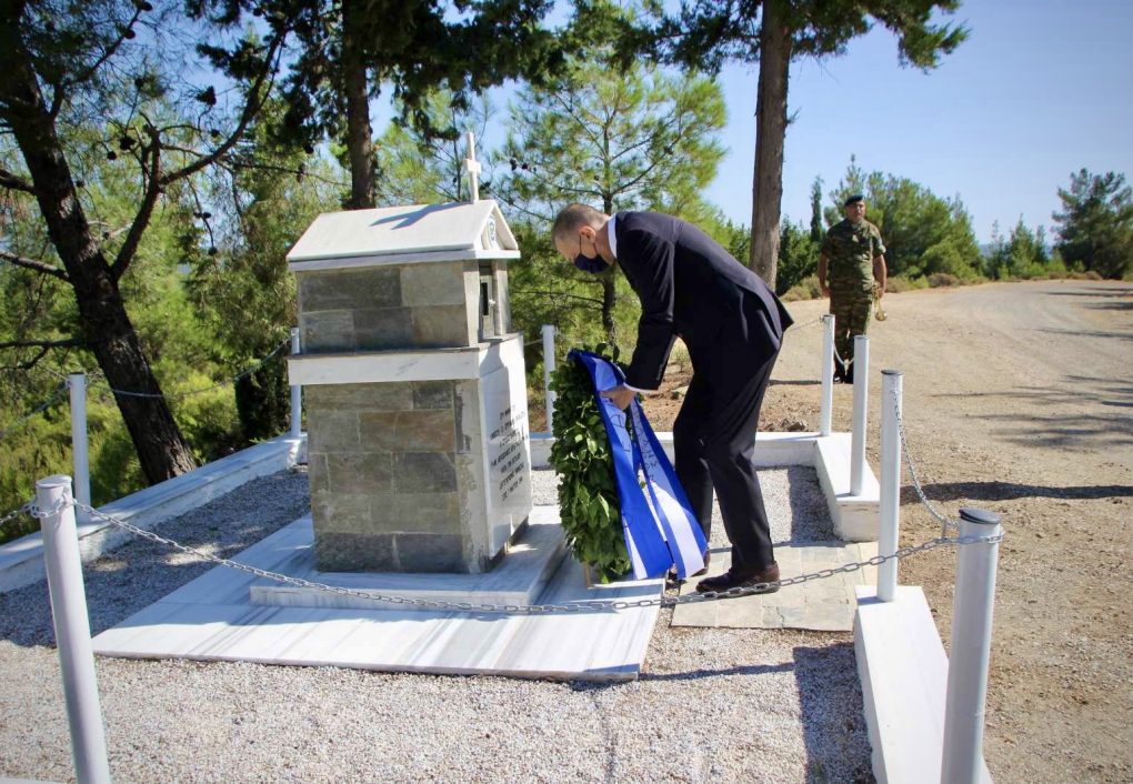 He laid a wreath at the Monuments in honour of Air Force men 2nd Lieutenant Spyridon Papaditsas and Lieutenant Colonel Stefanos Kourelias who died in the line of duty.