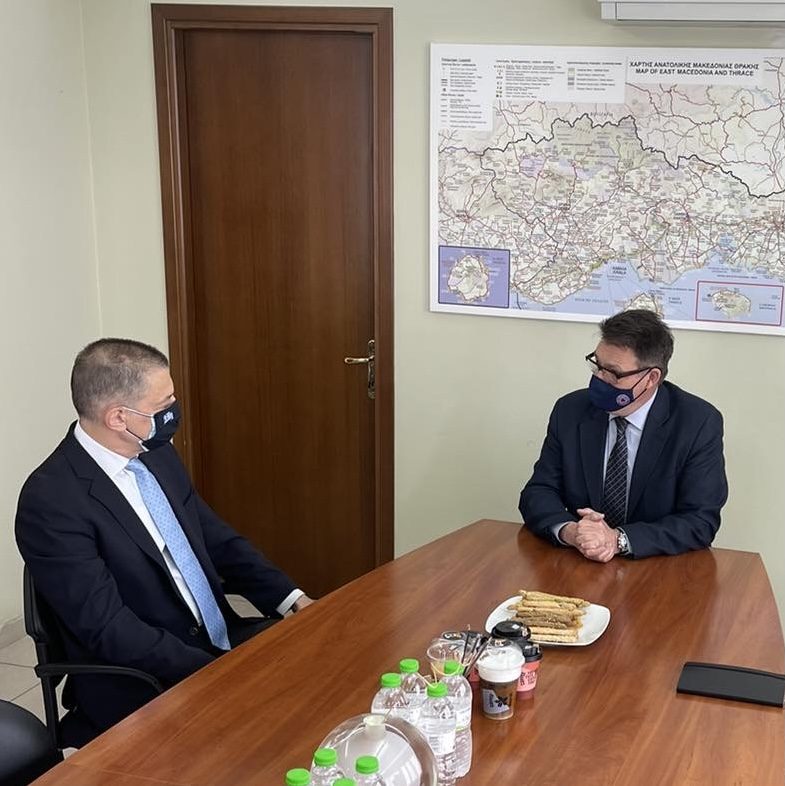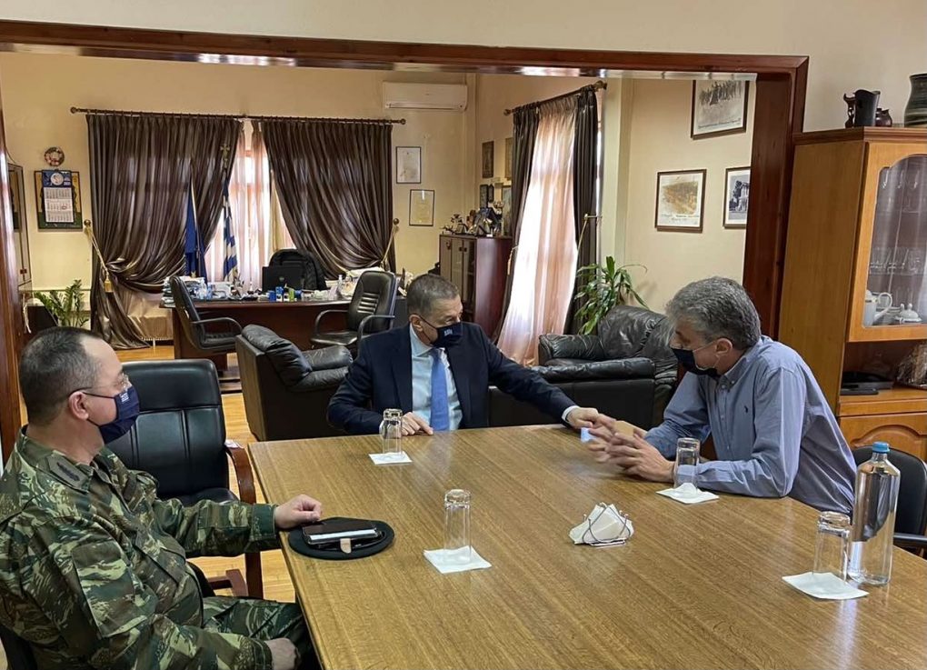 During his visit to the Prefecture of Evros on Holy Monday, 26 April 2021, the Deputy Minister of National Defence Alkiviadis Stefanis met with the Metropolitan of Didymotiho, Orestiada, and Soufli, Mr. Damaskinos, and the Mayors of Orestiada, Mr. Vasilis Mavridis, Didymotiho, Mr. Romylos Hatzigiannoglou, and Soufli, Mr. Panagiotis Kalakikos.