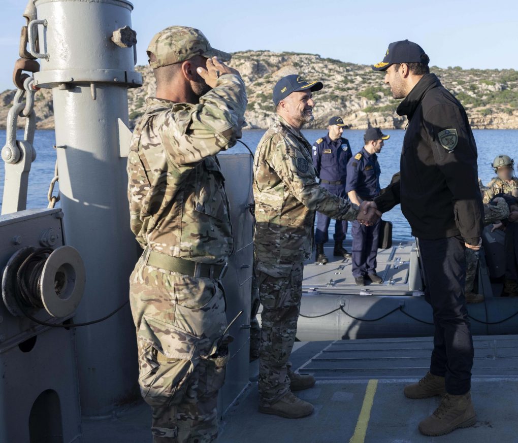 On Tuesday, 31 October 2023, the Deputy Minister of National Defence Mr. Ioannis Kefalogiannis, accompanied by the Commander in Chief of the Hellenic Fleet, Vice Admiral Dimitrios – Eleftherios Kataras HN, attended exercise “KYMA 3/23” of the Underwater Demolition Command, which took place on an islet of the Argo – Saronic Gulf. Exercise “KYMA 3/23” is the most important combined exercise of the Underwater Demolition Command. After operational training of Unconventional Warfare Teams and Unconventional Warfare Vessels, the two joined forces to execute complex technical tasks and combined exercises. Mr. Kefalogiannis had the opportunity to discuss with and congratulate the men of the Hellenic Navy's Underwater Demolition Forces for the flawless execution of such complex and demanding operational tasks. After the end of the activities, the Deputy Minister stated the following: