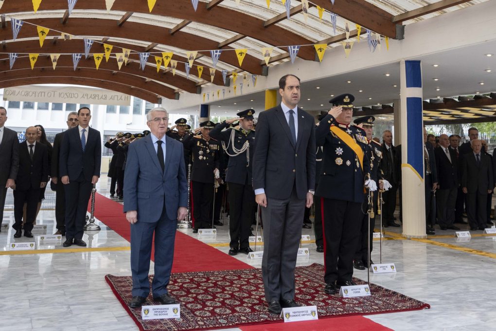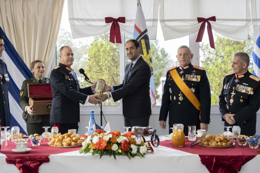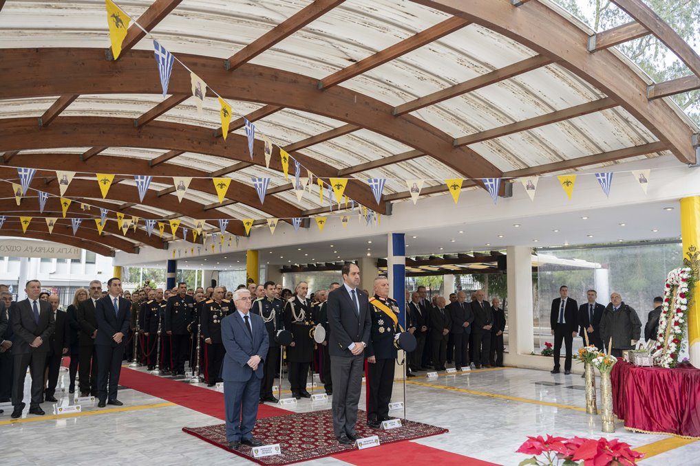 The ceremony was also attended by the Chief of Hellenic National Defence General Staff, General Konstantinos Floros, the Chief of Hellenic Army General Staff, Lieutenant General Angelos Houdeloudis, the Commandant of the Artillery School, Brigadier General Stergios Kazakis, the representative of the Hellenic Parliament, MP Athanasios Bouras, MPs, representatives of the local government, general and senior Armed and Security Forces Officers, retired Armed Forces Officers, as well as family members of heroes of the Artillery.