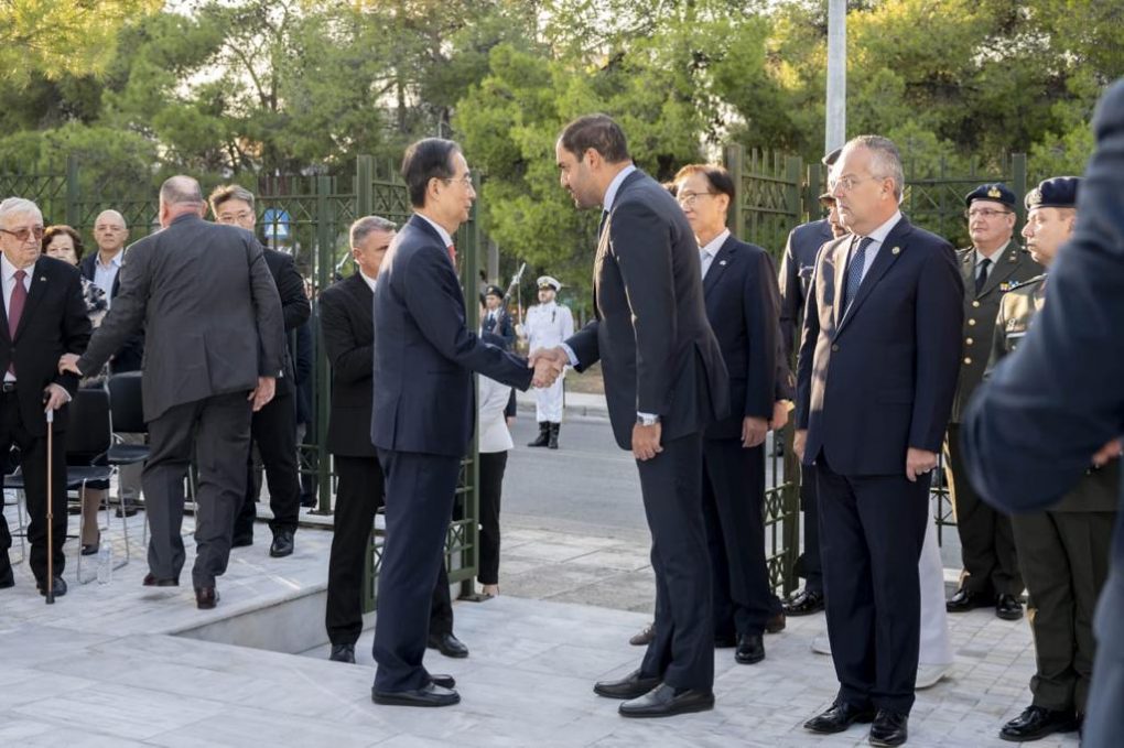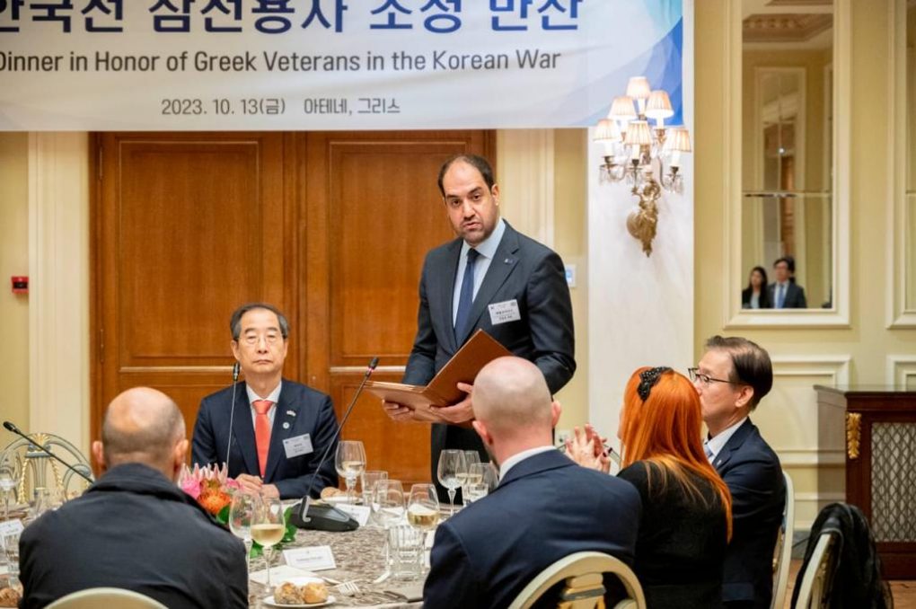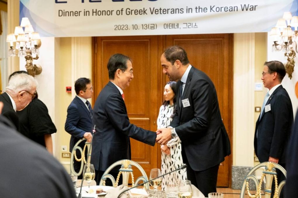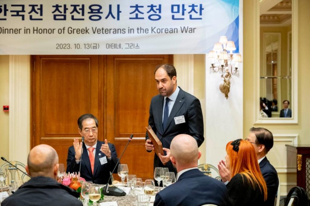 On Friday, 13 October, the Deputy Minister of National Defence Ioannis Kefalogiannis attended the wreath laying by the Prime Minister of the Republic of Korea, Mr. Duck-soo Han, in honour of the Veterans of the Korean War, followed by a dinner held by the South Korean Prime Minister in their honour.