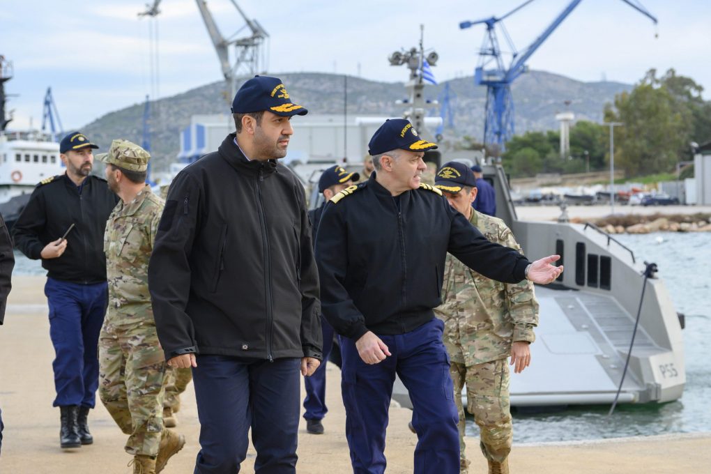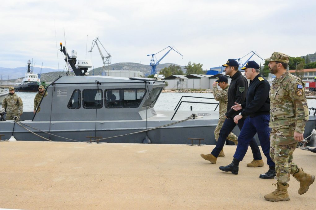 On Friday, 22 December 2023, the Deputy Minister of National Defence, Mr. Ioannis Kefalogiannis, accompanied by the Commander in Chief of the Hellenic Fleet, Vice Admiral Dimitrios-Eleftherios Kataras HN, was greeted by the Commander of the Underwater Demolition Command, Captain Apostolos Gavrielatos HN, at the Underwater Demolition Command facilities, where he was briefed on the organisation and mission of the Command. He also watched part of the training activity of the 199th Underwater Demolition Course.
