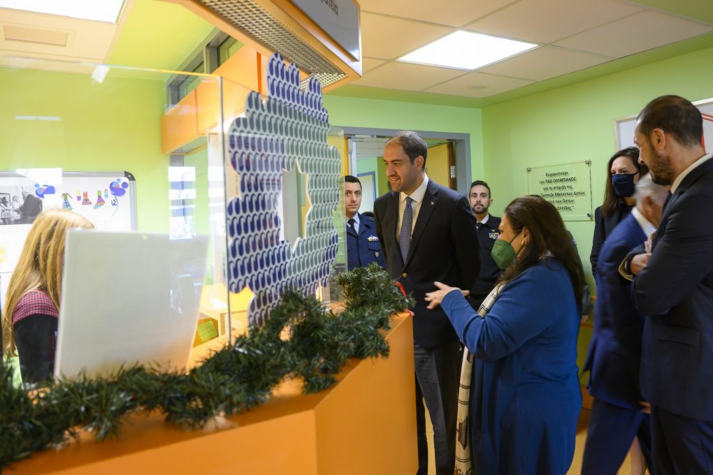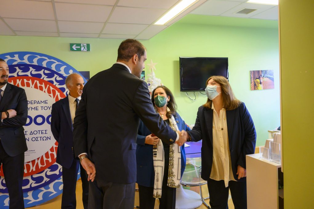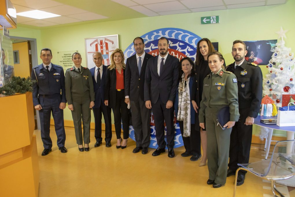 On Wednesday 20 December 2023, the Deputy Minister of National Defence Mr Ioannis Kefalogiannis visited the Bone Marrow Donor Bank of the “Orama Elpidas” Foundation, which is housed in the Children’s Oncological Unit “Marianna B. Vardinogianni” – ELPIDA, of the “Hagia Sophia” Children’s Hospital. There, he was greeted by the Common Director of “Aglaia Kyriakou” and “Hagia Sophia” children’s hospitals and Vice President of the Board of Directors of the “Orama Elpidas” Foundation, Mr Emmanouil Papasavvas, the General Secretary of the “Orama Elpidas” Foundation, Mrs Despina – Ino Konstantopoulou, and the Foundation’s Science Director, Professor, Mr Stelios Grafakos.