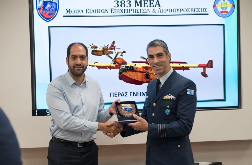 “Today I visited the Base of 383 Special Operations & Air Fighting Squadron, here in Thessaloniki, where I had the opportunity to tour the area where the Canadair CL415 are based, discuss with the personnel, and congratulate it on the important work it performs in firefighting. We are aware that the mission of Air Firefighting, which has been entrusted to them, is particularly demanding while, when needed, they perform search and rescue missions. We are proud that they are part of the Armed Forces, and grateful for their contribution to the Greek society. I would like to reassure you that we, as Ministry of National Defence, will continue to be at their side, guaranteeing the suitable conditions for them to fulfil their noble duty.”
