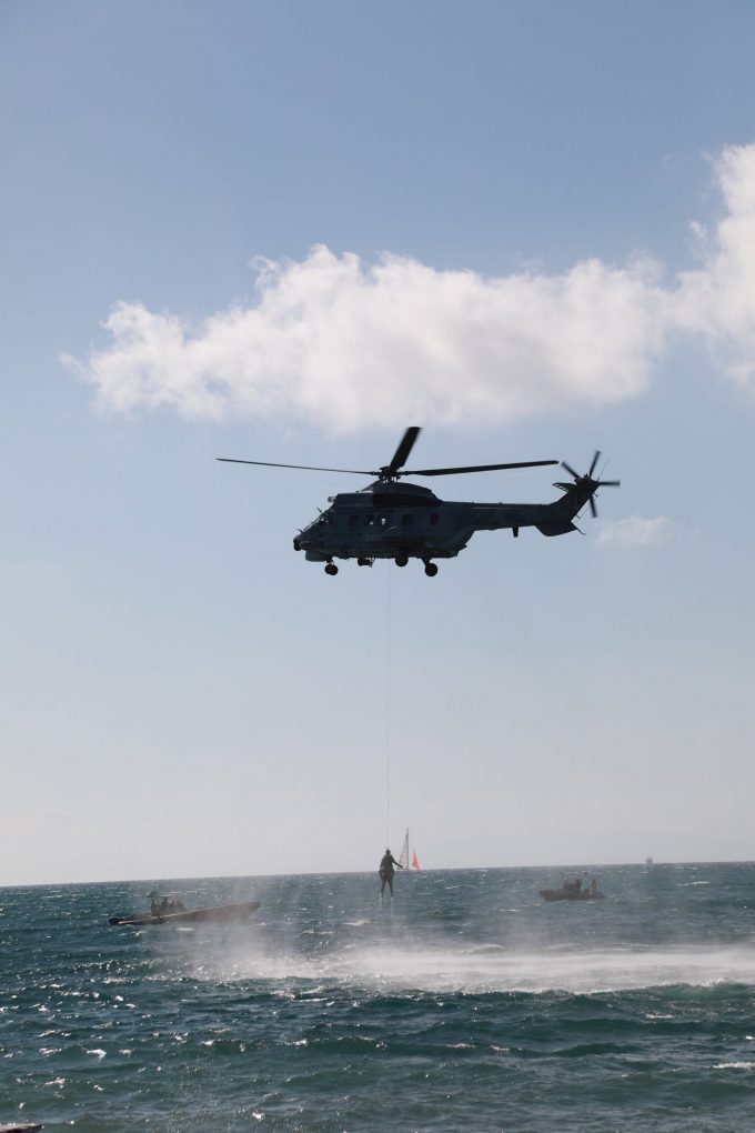 The show included, among others, a simulated dogfight between F-16 and Rafale F3R aircraft, a simulated surface naval strike by F-4 and F-16 aircraft, as well as a sea rescue demonstration by a Super Puma helicopter.