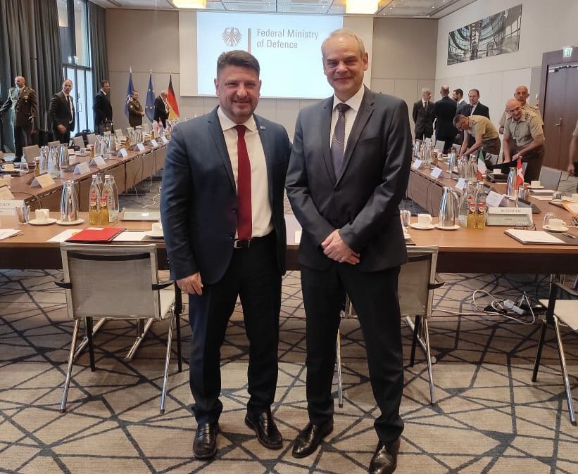 On the sidelines of the meeting, the Deputy Minister of National Defence met with his German counterpart, Mr. Benedikt Zimmer, the National Armaments Director of the German Federal Ministry of Defence, Vice Admiral Carsten Stawitzki, and the Secretary General of the Italian Ministry of Defence, Lieutenant General Luciano Portolano.