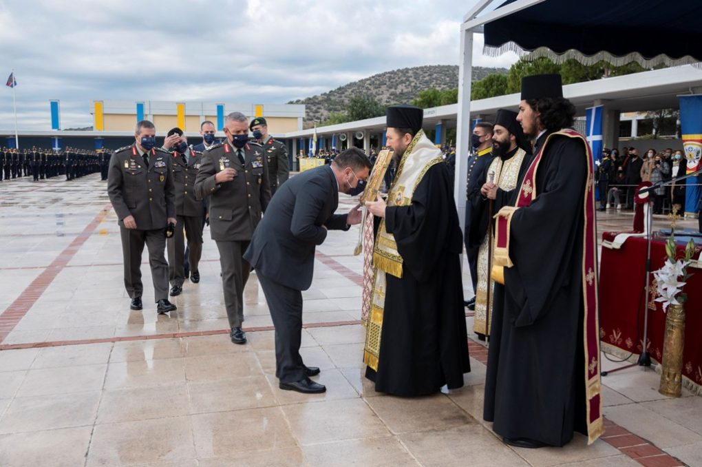 On Tuesday, 21 December 2021, the Deputy Minister of National Defence, Mr. Nikolaos Chardalias, attended the oath-taking ceremony of first year cadets, Class of 2025 “Lieutenant General Stylianos Kalbourtzis”, which was held at the Hellenic Military Academy (Evelpidon) in Vari, Attica.
