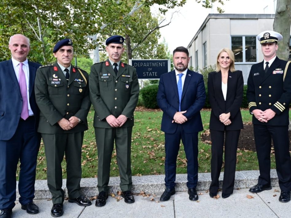 On Friday, 07 October 2022, within the framework of his official visit to the United States of America, the Deputy Minister of National Defence, Mr. Nikolaos Chardalias, had a meeting at the State Department with the Principal Deputy Assistant Secretary of the Bureau of European and Eurasian Affairs, Mr. Dereck J. Hogan.