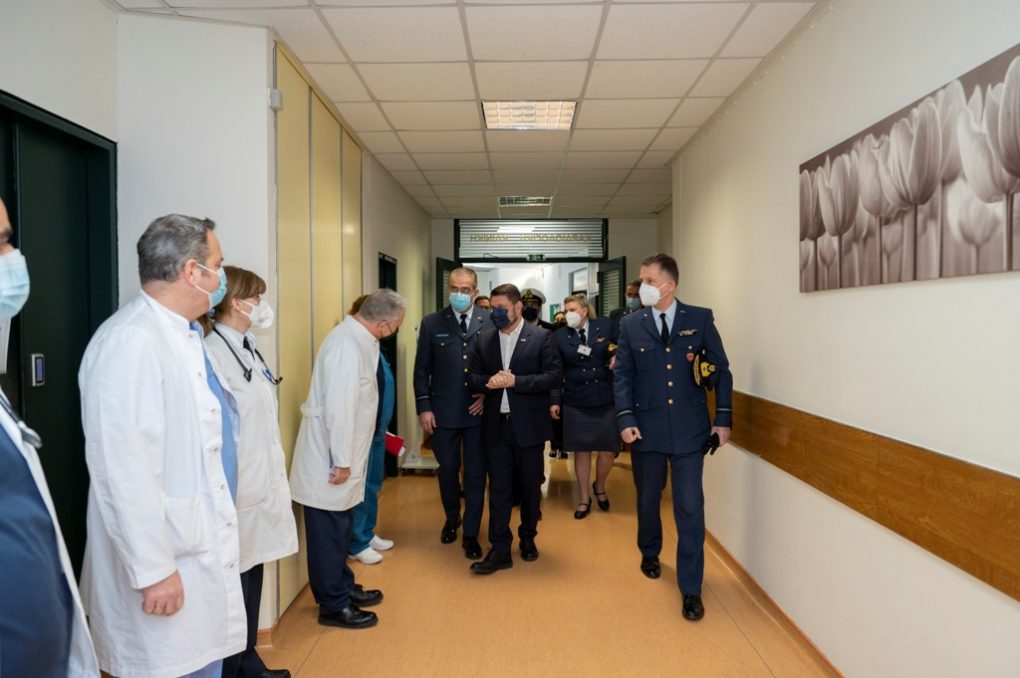 The Deputy Minister of Defence, Mr. Nikolaos Chardalias visited the 251 General Airforce Hospital on Thursday, 3 March 2022, accompanied by the Chief of HAFGS, Lieutenant General, Themistoklis Bourolias, and the Director of HAFGS Medical Corps Directorate, Major General, Panagiotis Kostopoulos, within the context of his visits to the Military Hospitals.
