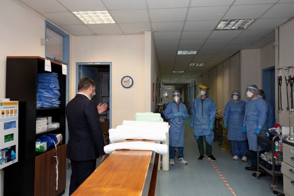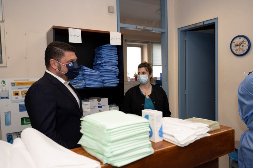 The Deputy Minister of Defence was briefed by the Commander of 251 General Airforce Hospital, Brigadier General, Konstantinos Georganas, on the organization and operation of the Military Hospital. He subsequently toured the Hospital premises and infrastructure where he talked with the Hospital physicians, nurses, and administrative personnel, as well as with inpatients and their accompanying persons.