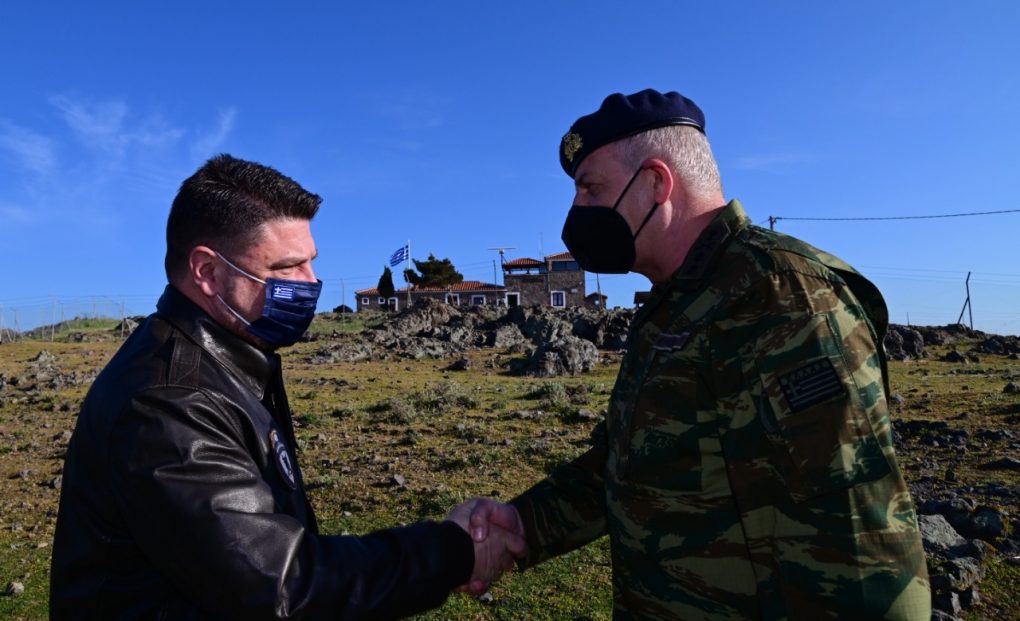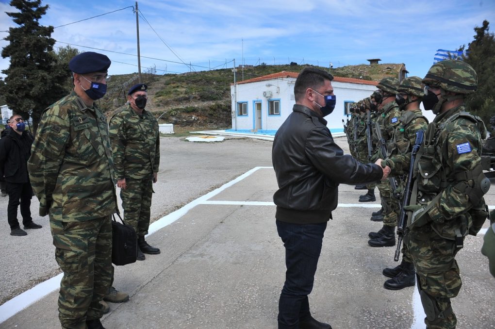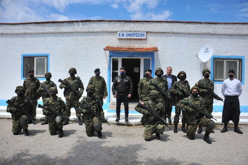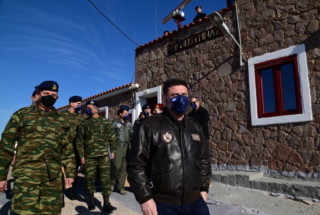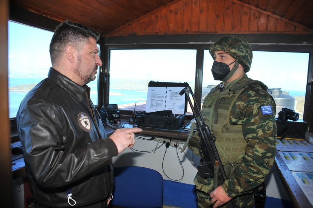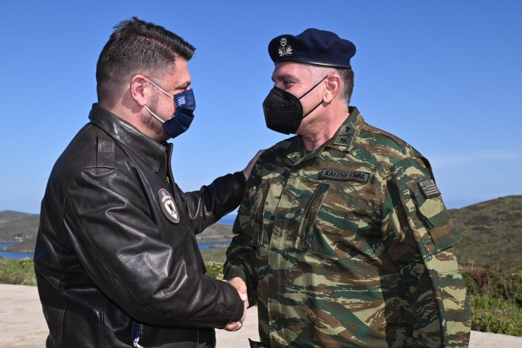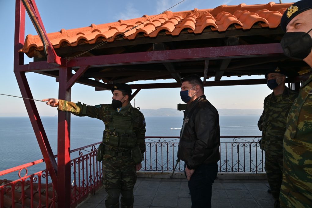 On Holy Wednesday, 20 April 2022, the Deputy Minister of National Defence, Mr. Nikolaos Chardalias, went to Lesbos, the small islet Panaghia, and Inousses, where he visited the Army Surveillance Outposts of “MITHYMNA”, “PANAGHIA”, and “INOUSSES”.
