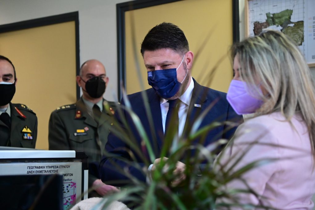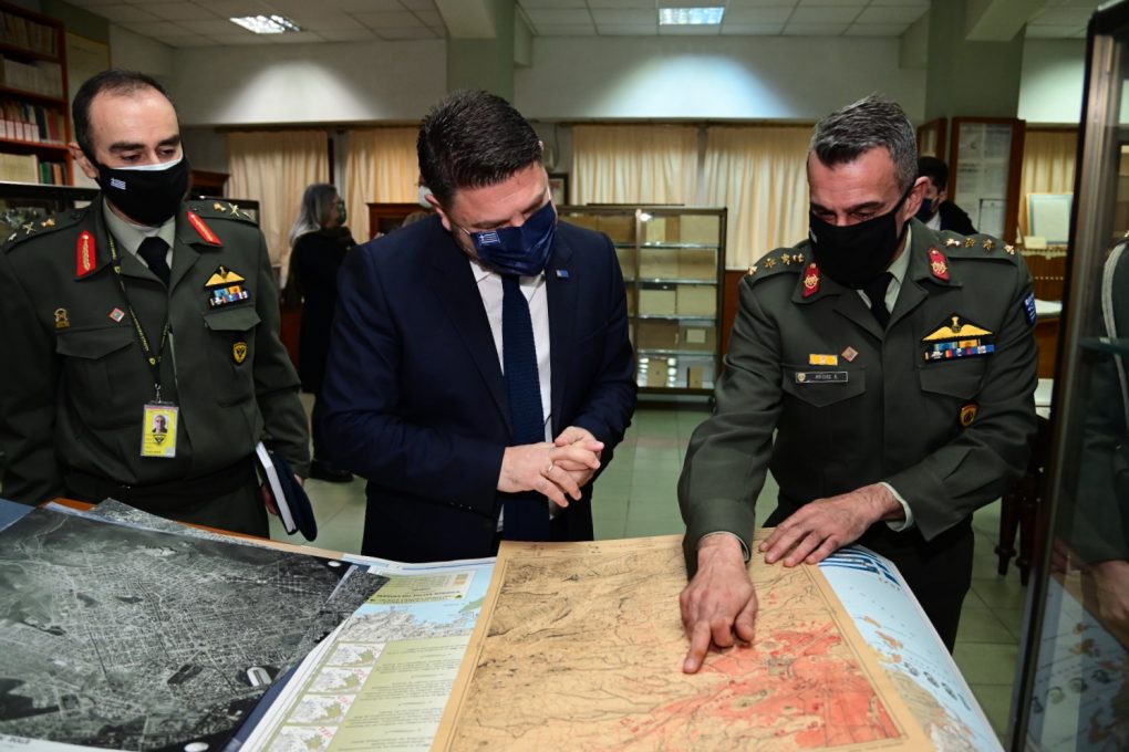 On Wednesday, 23 March 2022, the Deputy Minister of National Defence, Mr. Nikolaos Chardalias, visited the Hellenic Military Geographical Service in Athens, accompanied by the Director of the Geographical Directorate of the Hellenic Army General Staff, Brigadier General Kimonas Kalenteridis.