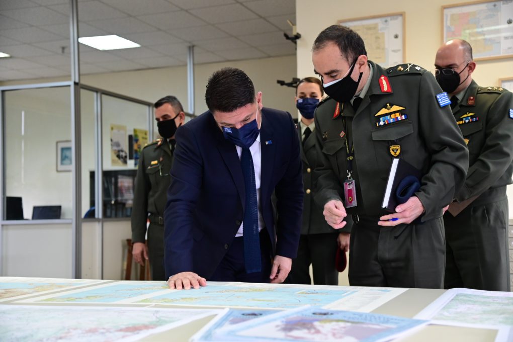 Within the framework of the visit, Mr. Chardalias was briefed by the Commander of the Hellenic Military Geographical Service, Colonel Dimitrios Loisios, on the Service’s history, organisation, mission, activities, geographical products, and scientific – technical work.