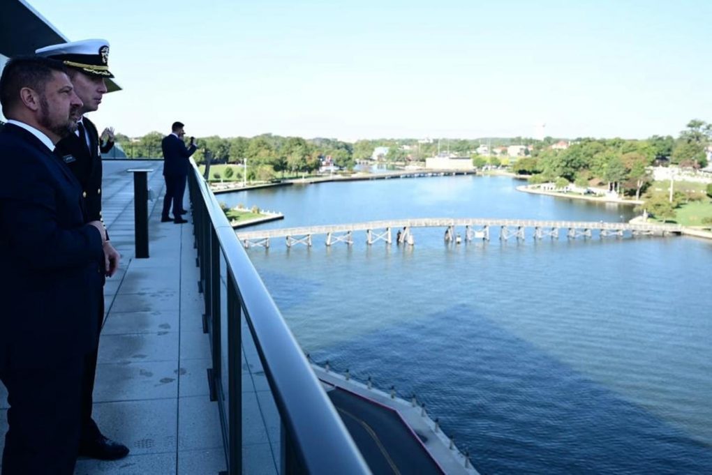 On Friday, 07 October 2022, first day of his official visit to the United States of America, the Deputy Minister of National Defence, Mr. Nikolaos Chardalias, visited the US Naval Academy in Washington, DC, where he was welcomed by the Academy Commandant, Vice Admiral Sean Buck.