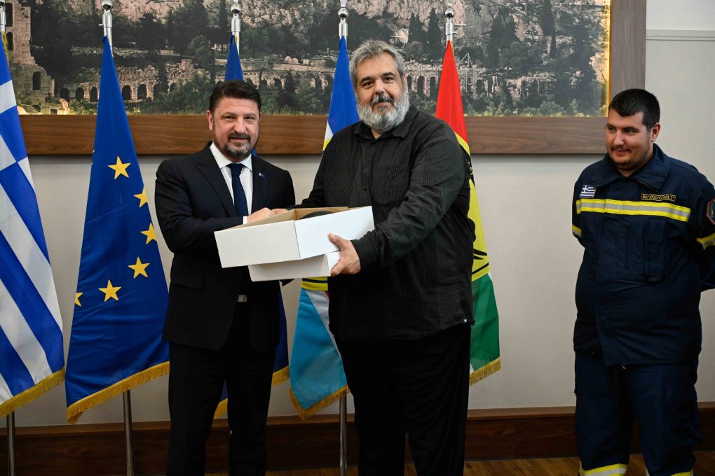 On Wednesday, 19 April 2023, the Deputy Minister of National Defence, Mr. Nikolaos Chardalias, delivered personal protective equipment to 18 volunteer organisations of the Panhellenic Association of Volunteer Forest Protection – Firefighting Organisations (POEODP). The equipment was received by the President of the Board of POEODP, Mr. Stavros Salagiannis, and the team leaders.