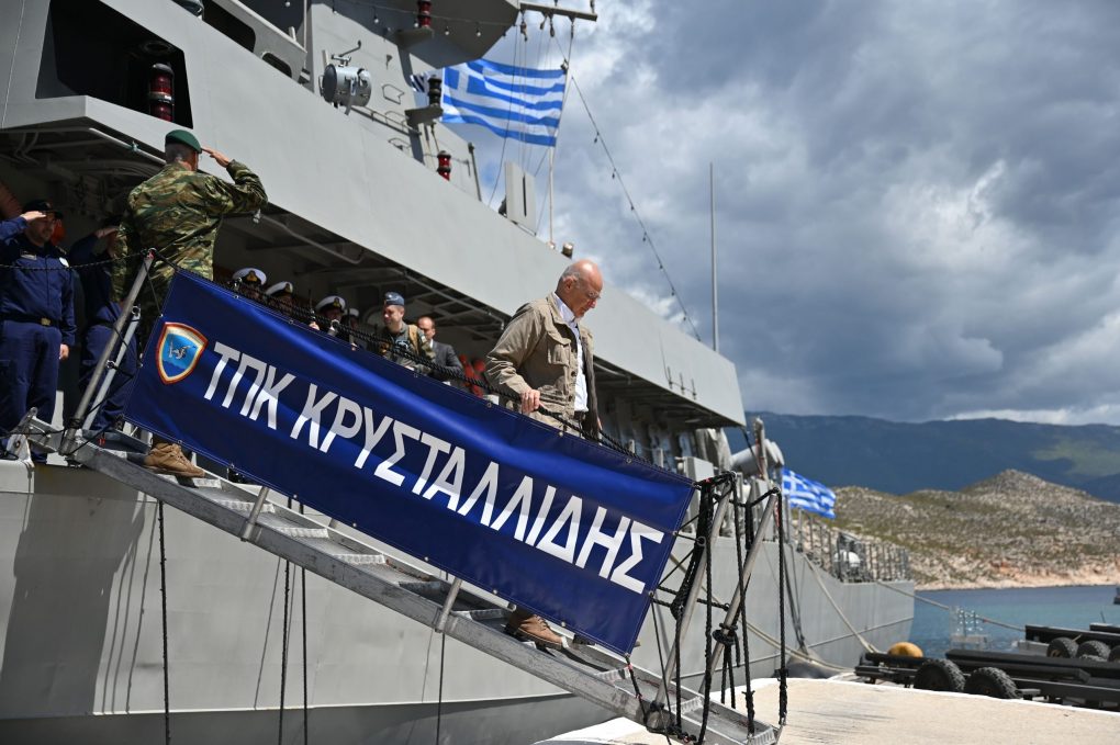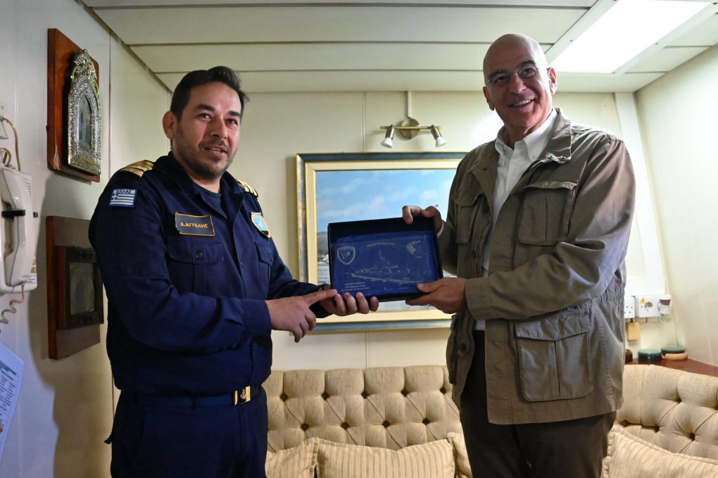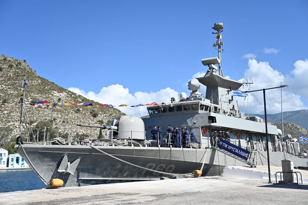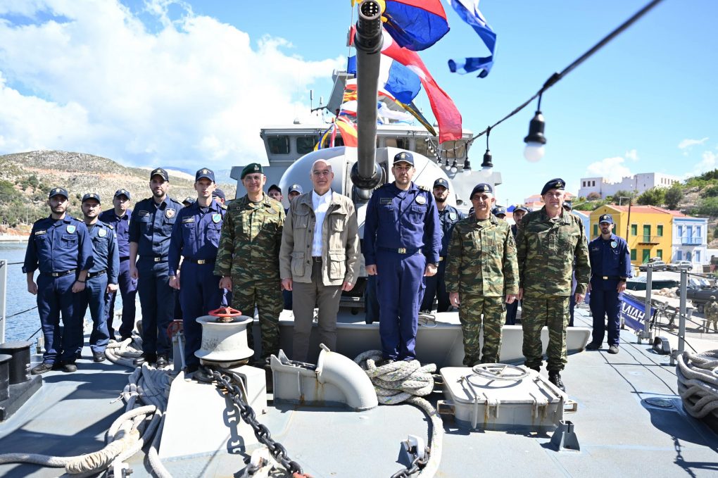 Specifically, the Minister of National Defence visited the Patrol Boat “Krystallidis” in the Harbour of Megisti, where he exchanged wishes with the Captain, Lieutenant Commander Dimitrios Angelis and the crew for Easter, and thanked them for their service to the country.