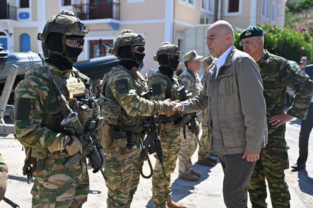On Easter Sunday, 5 May 2024, the Minister of National Defence Nikos Dendias, continued his visit on Kastellorizo, accompanied by the Chief of the Hellenic National Defence General Staff, General Dimitrios Choupis, the Commander of Supreme Military Command of Interior and Islands, Lieutenant General Emmanouil Theodorou and the Commander of the 95 Higher National Guard Battalions Command, Major General Emmanouil Chatzis.