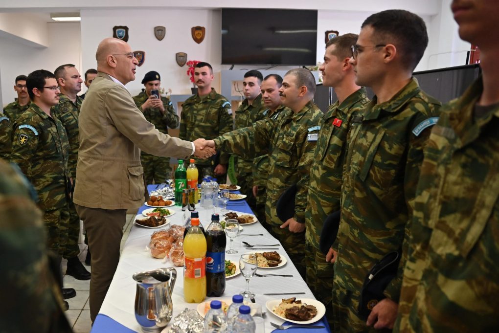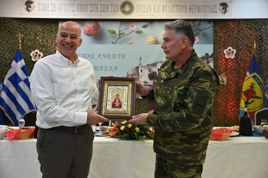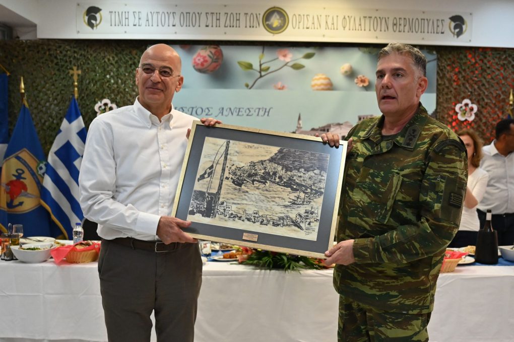 Subsequently, Mr Dendias, alongside the officers and soldiers of the Island Defence Command, shared an Easter Meal, at the military camp of the Island Defence Command of Megisti, where he also exchanged wishes.