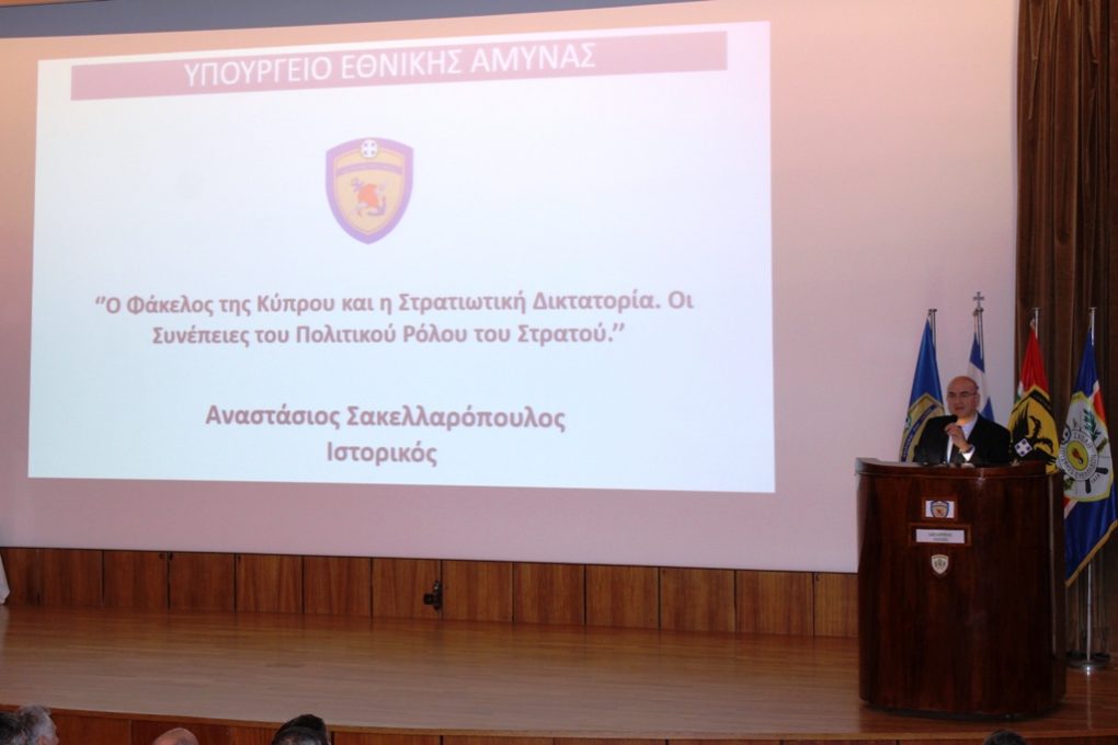 Tasos Sakellaropoulos, historian, director of the Historical Archives of Benaki Museum and member of the Experts Committee of the Hellenic Parliament on the Cyprus files, who delivered a speech entitled “Cyprus files and military dictatorship. The consequences of the Army’s political role”.