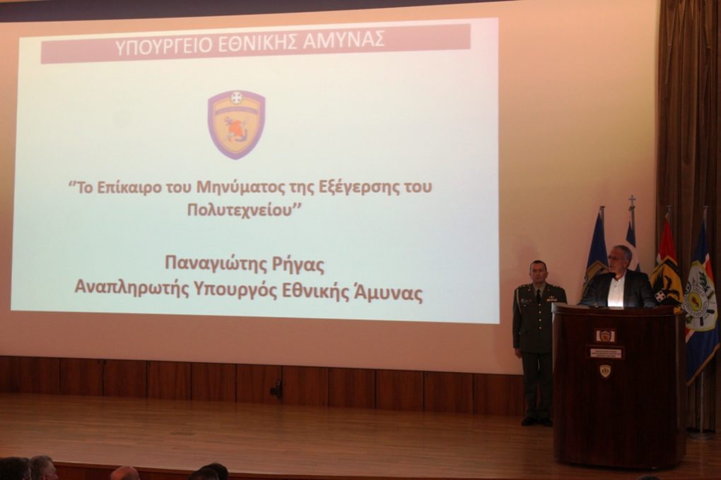 Panagiotis Rigas, Alternate Minister of National Defence, who delivered a speech on “The topical message of the Polytechnic uprising”;
