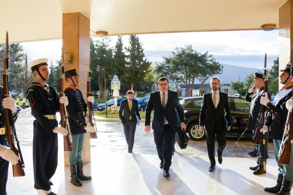The Alternate Minister of National Defence Panagiotis Rigas received in his office the Vice-Minister of National Defence of Lithuania Edvinas Kerza, on Tuesday 12 February 2019, accompanied by the Lithuanian Ambassador in Athens Mr Rolandas Kacinskas and the Director of the National Cyber Security Centre of Lithuania Mr Rytis Rainys. During the meeting they talked about issues of mutual interest.