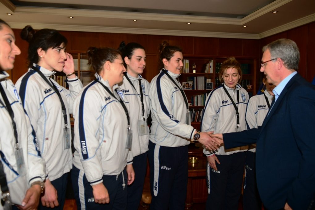 The Alternate Minister of National Defence, Panagiotis Rigas, received in his office today at the Ministry of National Defence, the Armed Forces National Women’s Basketball Team. During the meeting, issues related to the team’s activities and prospects were discussed. The Alternate Minister of National Defence expressed his support and assured the athletes and their coach that he is standing by them.