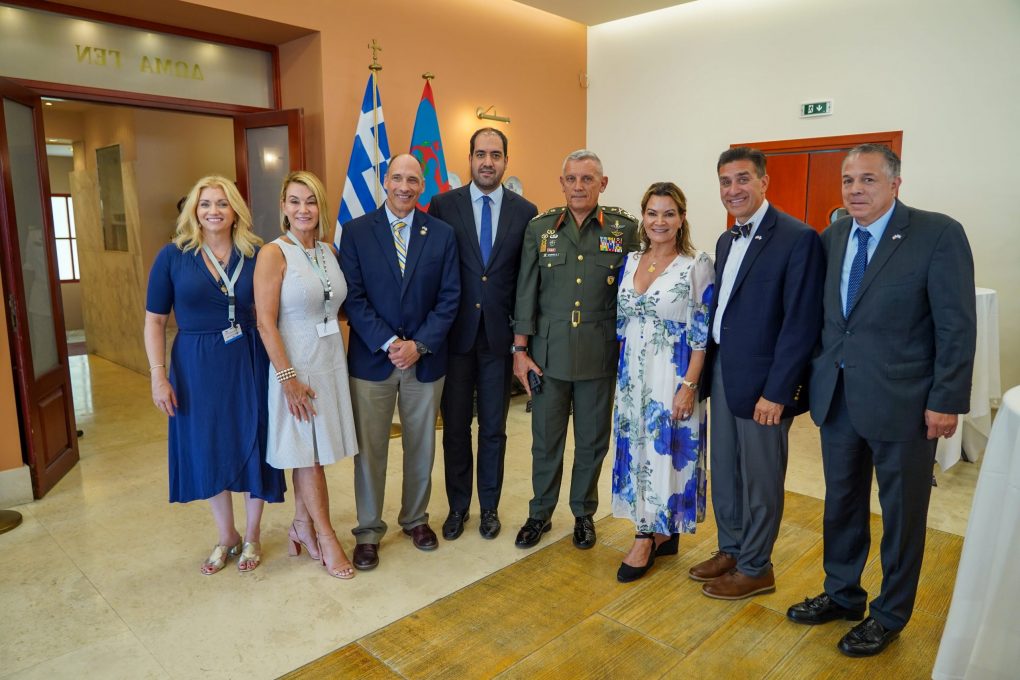 The Deputy Minister of National Defence, Mr. Ioannis Kefalogiannis, welcomed on Friday 21 July 2023 a delegation from the World Hellenic Inter-Parliamentary Association (WHIA) at the Ministry of National Defence in the presence of the Chief HNDGS General Konstantinos Floros, the Chief HAGS Lieutenant General Angelos Choudeloudis, the Chief HNGS Vice Admiral Ioannis Drymousis and the Chief HAFGS Lieutenant General Themistoklis Bourolias, where issues of national concern have been analysed.