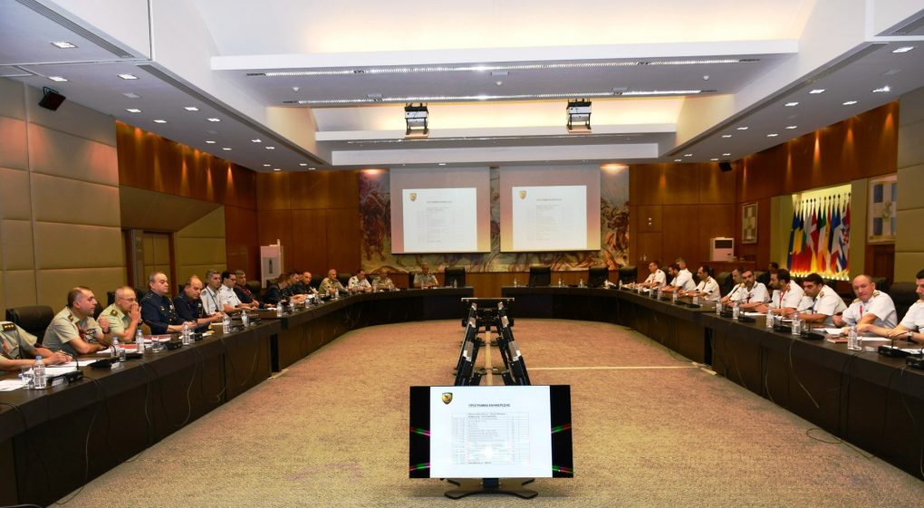 On Thursday, 10 September 2019, a meeting was held under the Deputy Minister of National Defence Alkiviadis Stefanis at “Ioannis Kapodistrias” Ηall at the Ministry of National Defence with the Commanders/Directors of all Simulation Centres of the three Services of the Armed Forces (Army, Navy, and Air Force).
