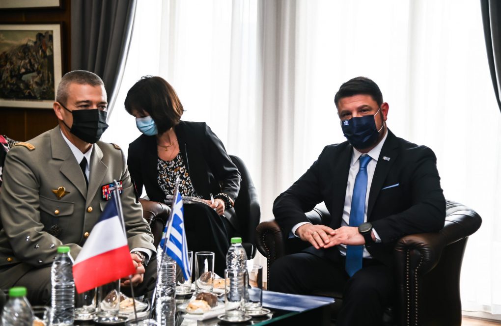 The Deputy Minister of National Defence Mr Nikolaos Chardalias today, Friday 21 January 2022, conducted a meeting at the Ministry of National Defence with the Chief of the Defence Staff of France, General Thierry Burkhard, in the context of his official visit to Greece.