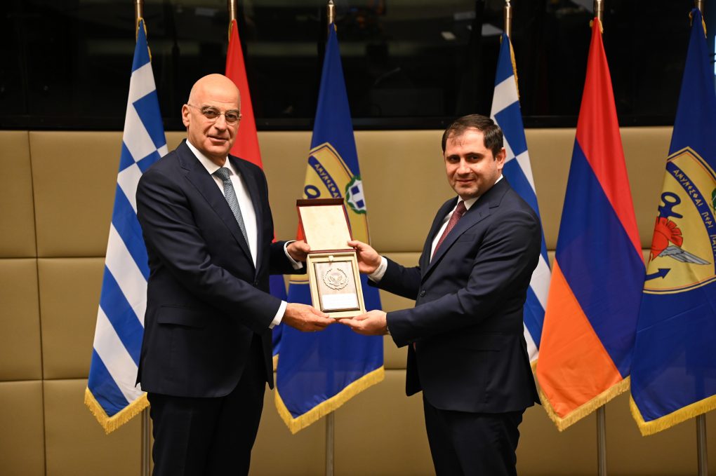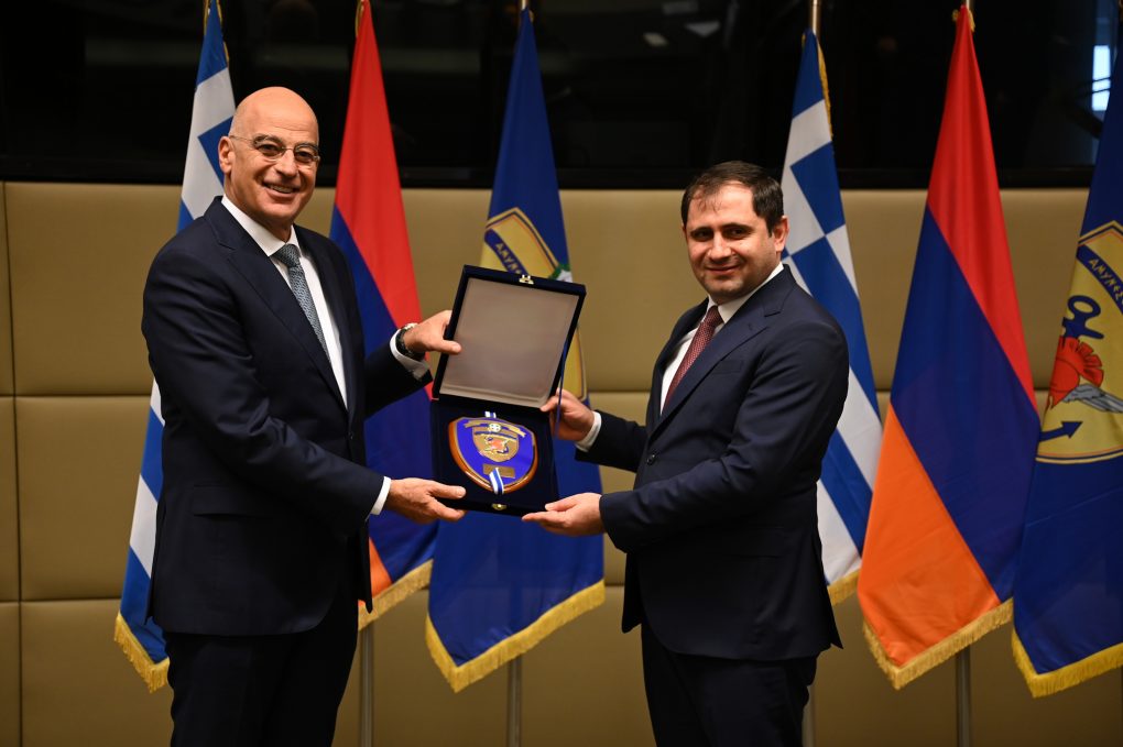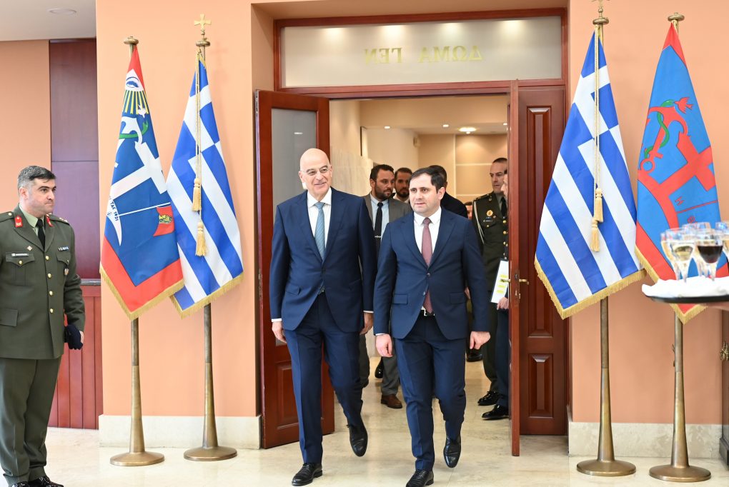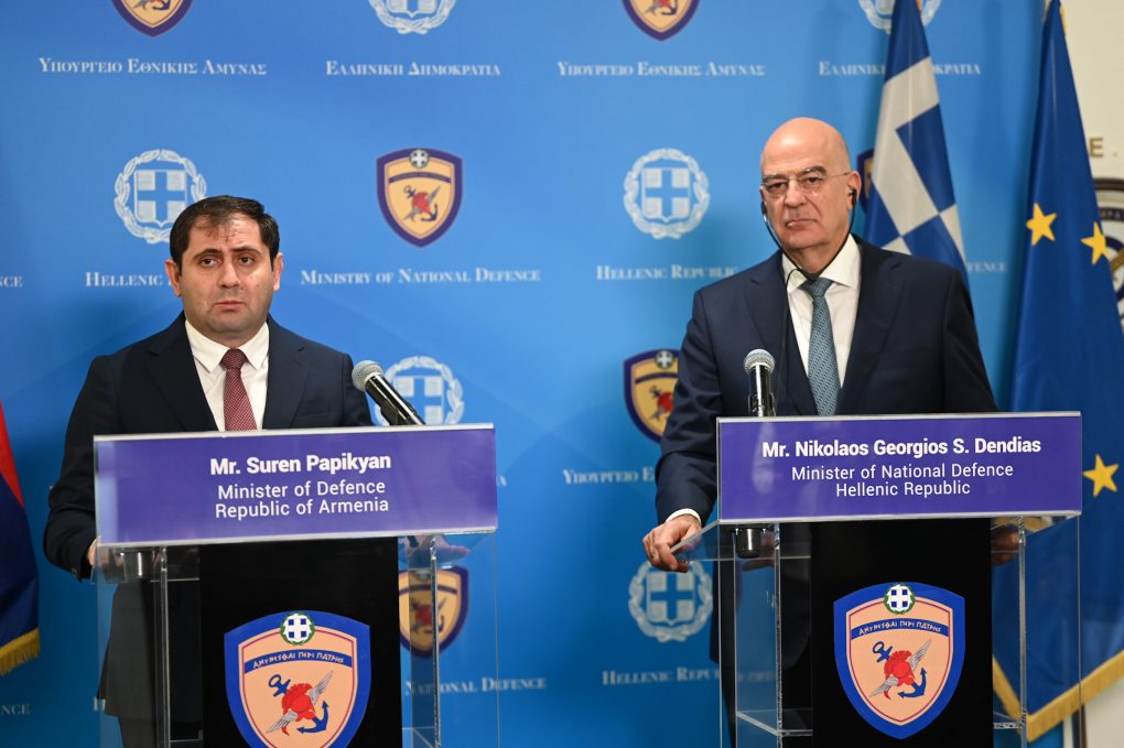 The Minister of National Defence, Nikos Dendias, met today, Thursday 14 December 2023, with the Minister of Defence of Armenia Suren Papikyan, who conducted an official visit to Greece.