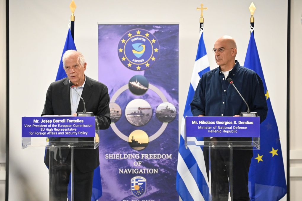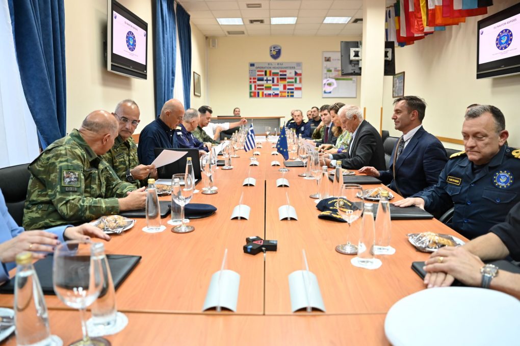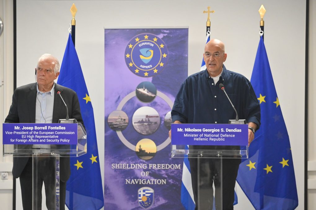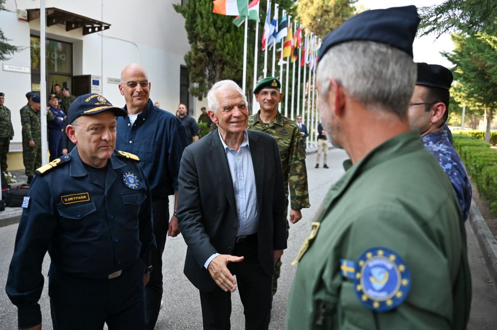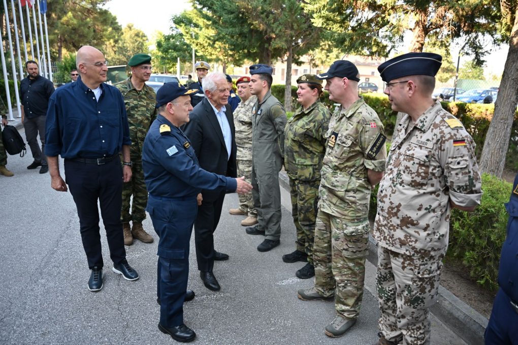 Afterwards, Mr Dendias and Borrell went to Larisa, where they visited the HQ of Operation “ASPIDES” (OHQ EUNAVFOR ASPIDES) at the 1st Army/EU-ΟHQ “ACHILLEAS”, accompanied by the Chief of HNDGS General Dimitrios Choupis and the Chief of HNGS Vice Admiral Dimitrios – Eleftherios Kataras HN.