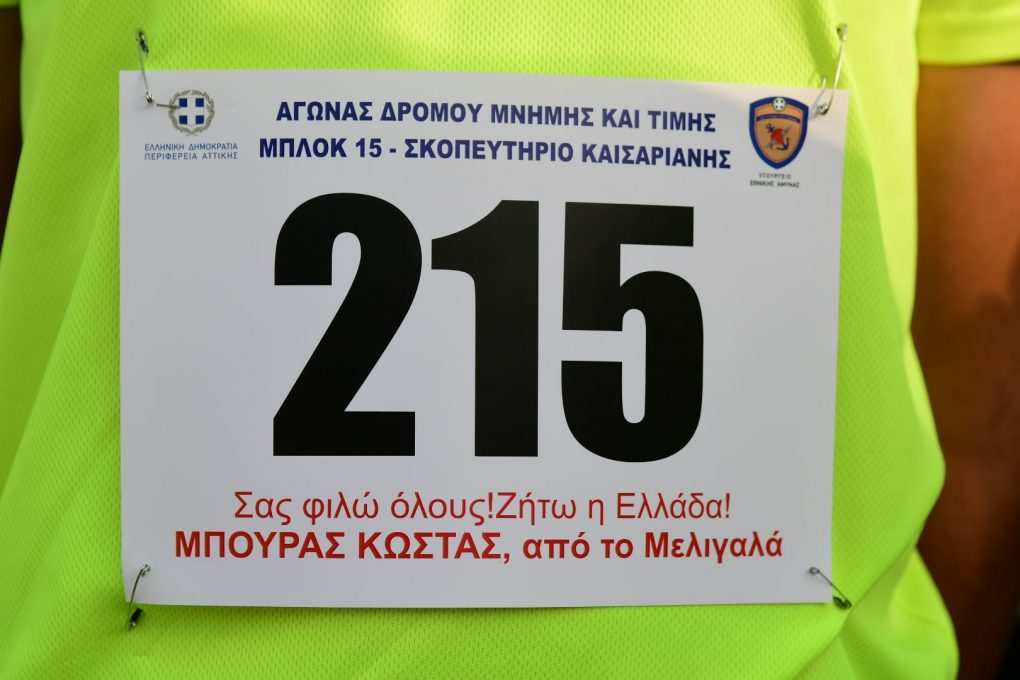The starting signal was given by the Alternate Minister of National Defence Panagiotis Rigas at 09:15 in front of BLOCK 15, the building holding those awaiting execution, in Haidari Camp “KARAISKAKI A” and runners finished in the execution area in the Kesariani Shooting Range, in front of the National Resistance Museum, following the route usually chosen by German trucks transporting resistance fighters to be executed. After the finish, the runners visited the execution area and laid flowers.