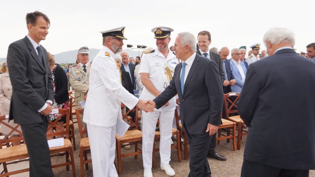 The ceremony was also attended by the Chief of Hellenic Navy General Staff, Vice Admiral Nikolaos Tsounis HN, as well as delegations of Armed Forces Officers. The event also included a demo flight by an F-16 fighter aircraft and a parachutist jump.