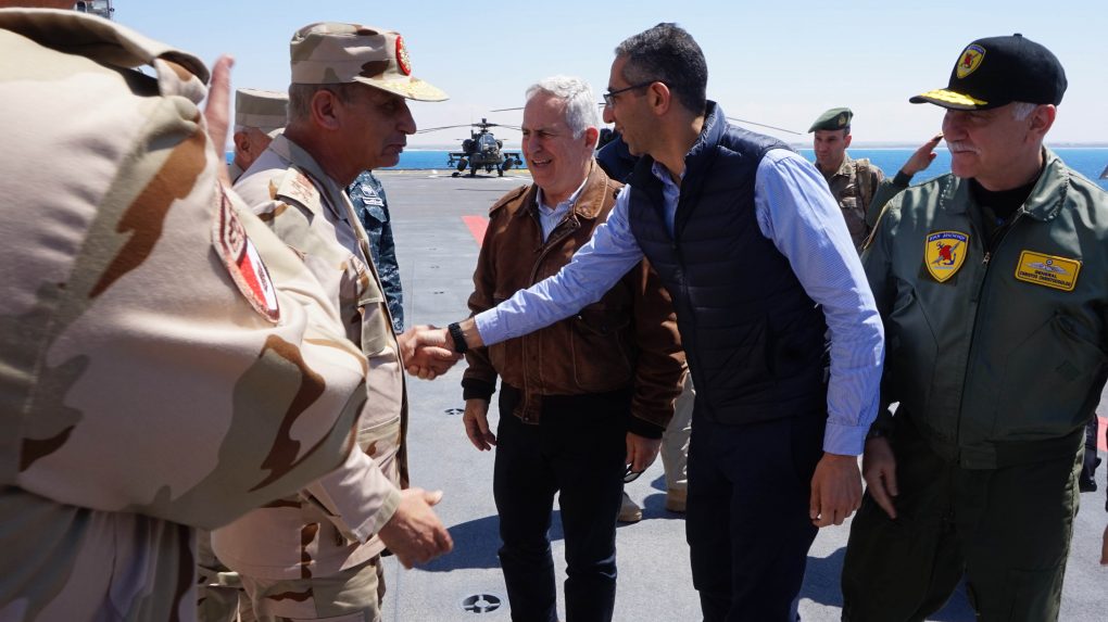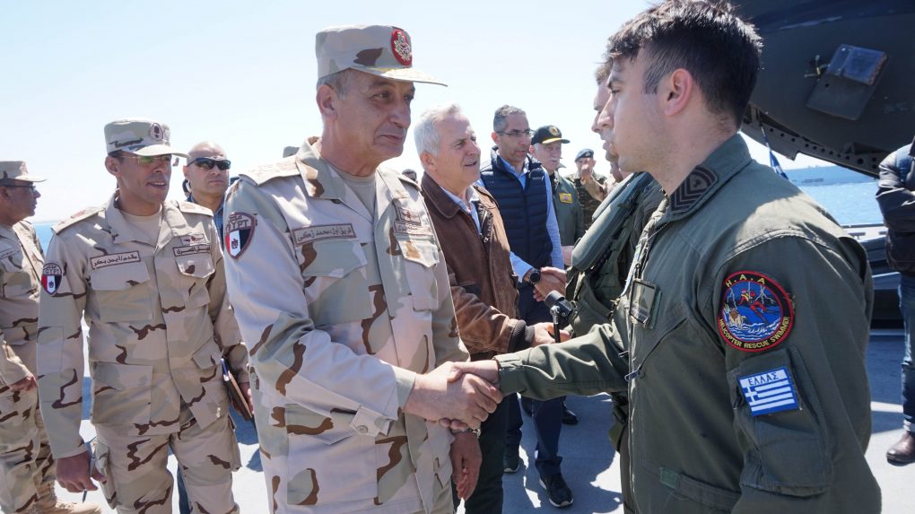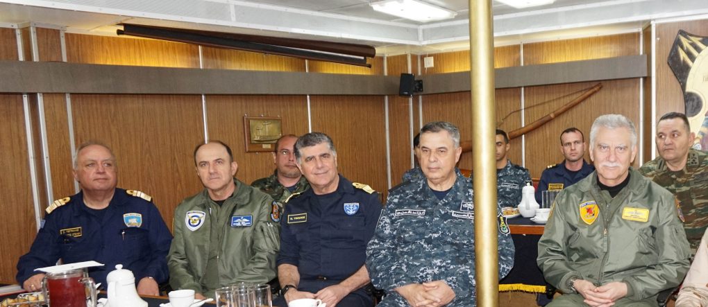 On Wednesday, 17 April 2019, the Minister of National Defence Evangelos Apostolakis, accompanied by the Chief of Hellenic National Defence General Staff, General (HAF) Christos Christodoulou, the Chief of Hellenic Navy General Staff, Vice Admiral Nikolaos Tsounis HN, the Chief of Hellenic Air Force General Staff, Lieutenant General (HAF) Georgios Blioumis, and the Chief of Staff of the Hellenic Army General Staff, Lieutenant General Konstantinos Masouras, who represented the Chief HAGS, attended activities during the Distinguished Visitors’ Day (DV Day) of joint exercise “MEDUSA 8” in Egypt.
