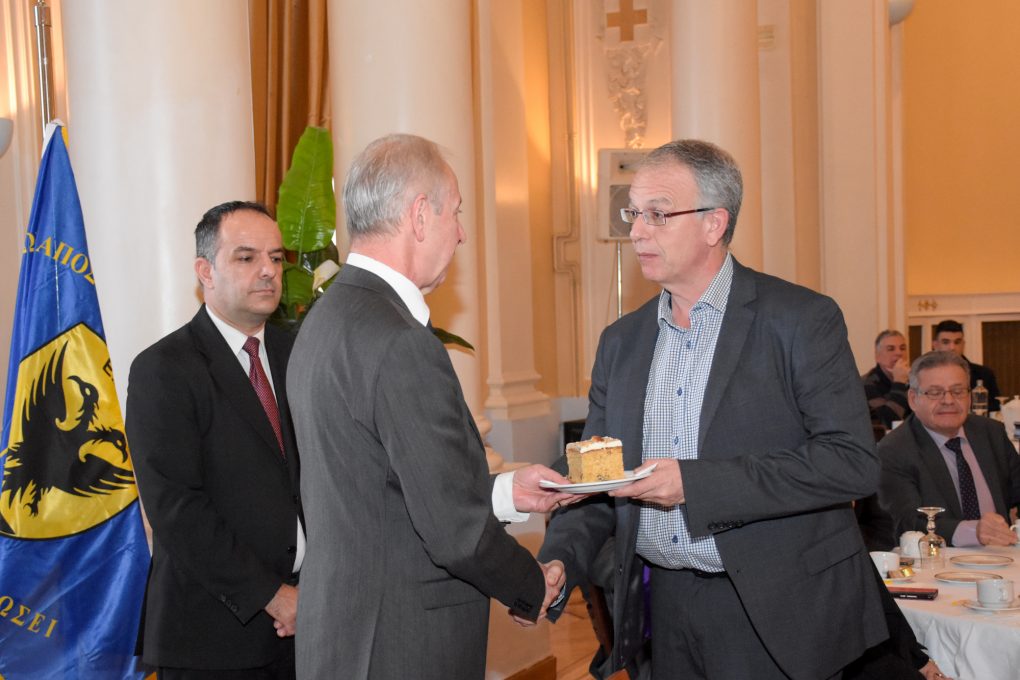 The Minister of National Defence Evangelos Apostolakis represented the government in an event for the cutting of the New Year’s Pie and the award of distinguished students, organised by the Retired Army Officers Association, conducted on Saturday 26 January 2019 at the Armed Forces Officers Club, in Athens. The Alternate Minister of National Defence Panagiotis Rigas also attended the event.
