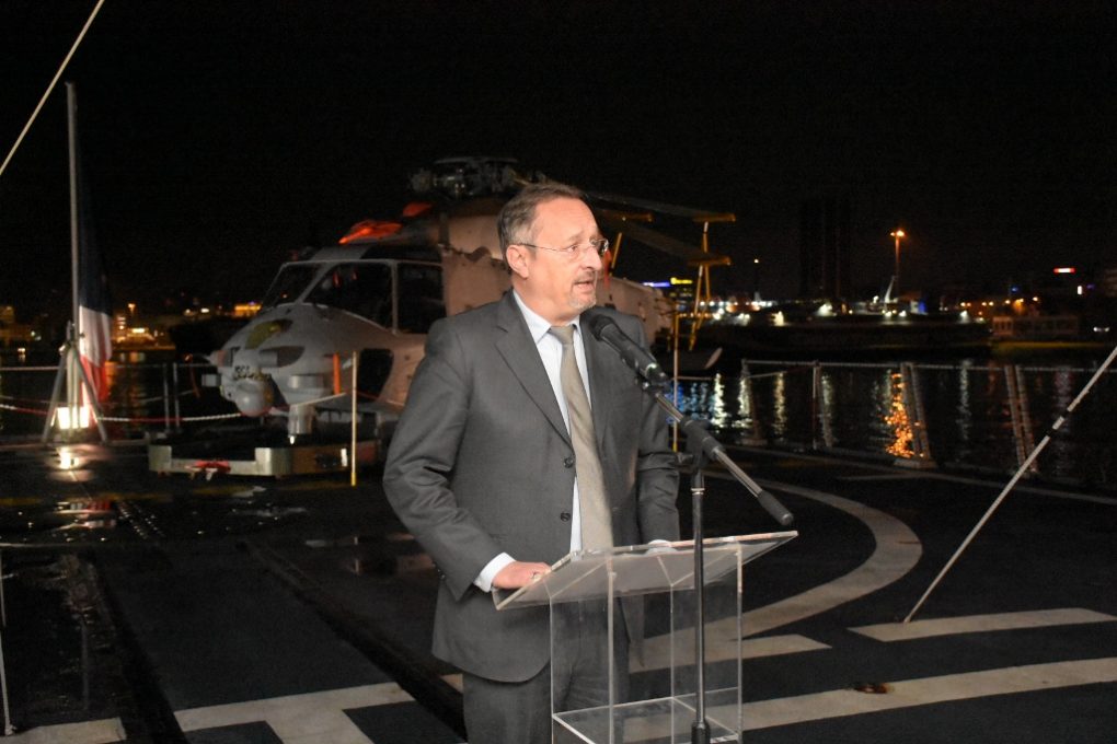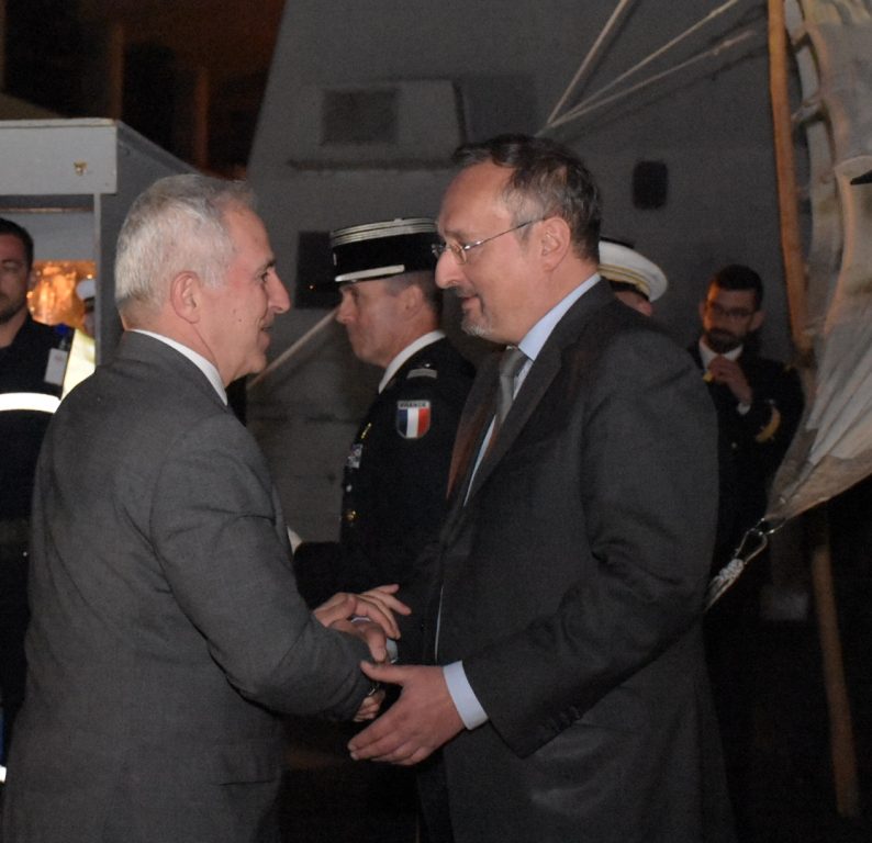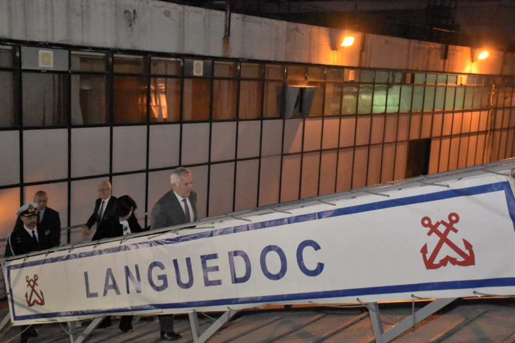 The Minister of National Defence Evangelos Apostolakis attended, after being invited by the Ambassador of France in Greece Christophe Chantepy, a formal event aboard the French frigate LANGUEDOC, on Wednesday 17 April 2019. LANGUEDOC is docked in Piraeus from 13 to 18 April 2019.