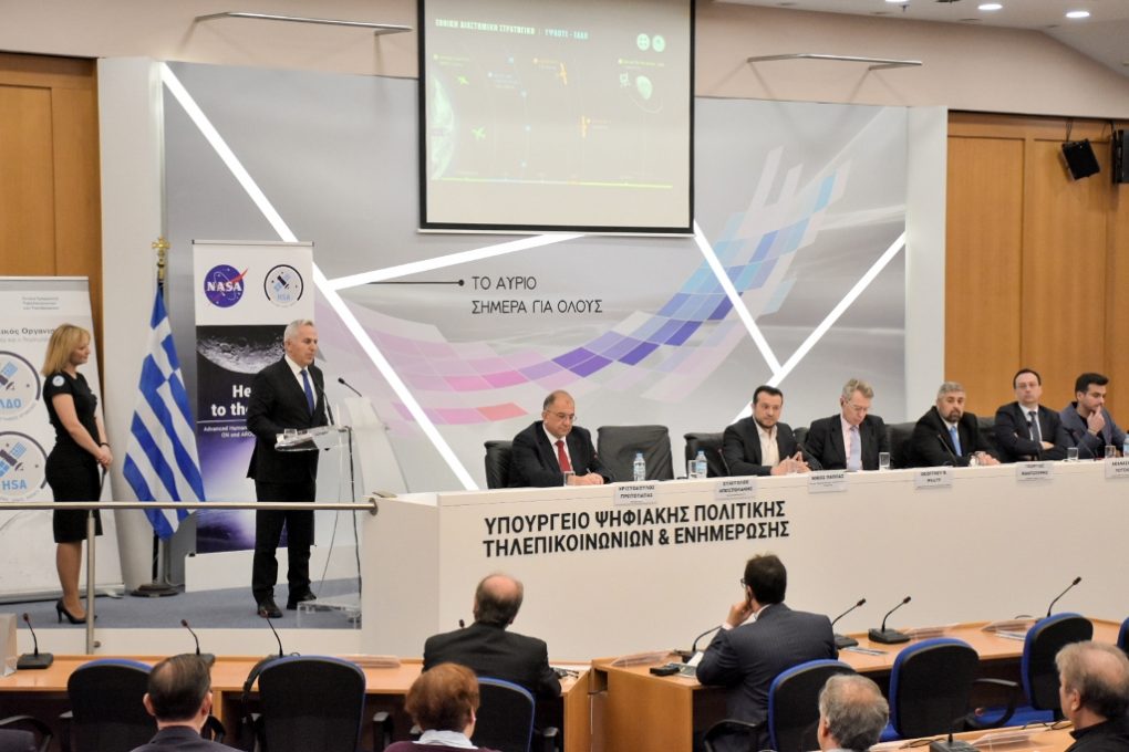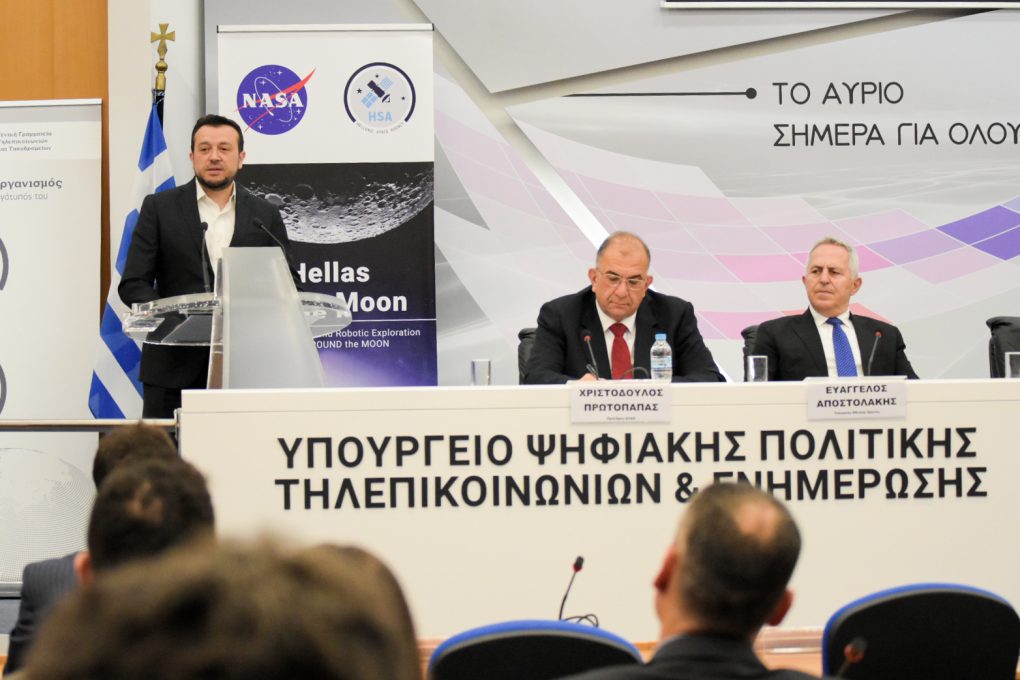 On Friday, 19 January 2019, the Minister of National Defence Evangelos Apostolakis attended an event of the Hellenic Space Agency on the subject “HELLAS TO THE MOON”, which took place at the amphitheatre of the Ministry of Digital Policy, Telecommunications, and Media.