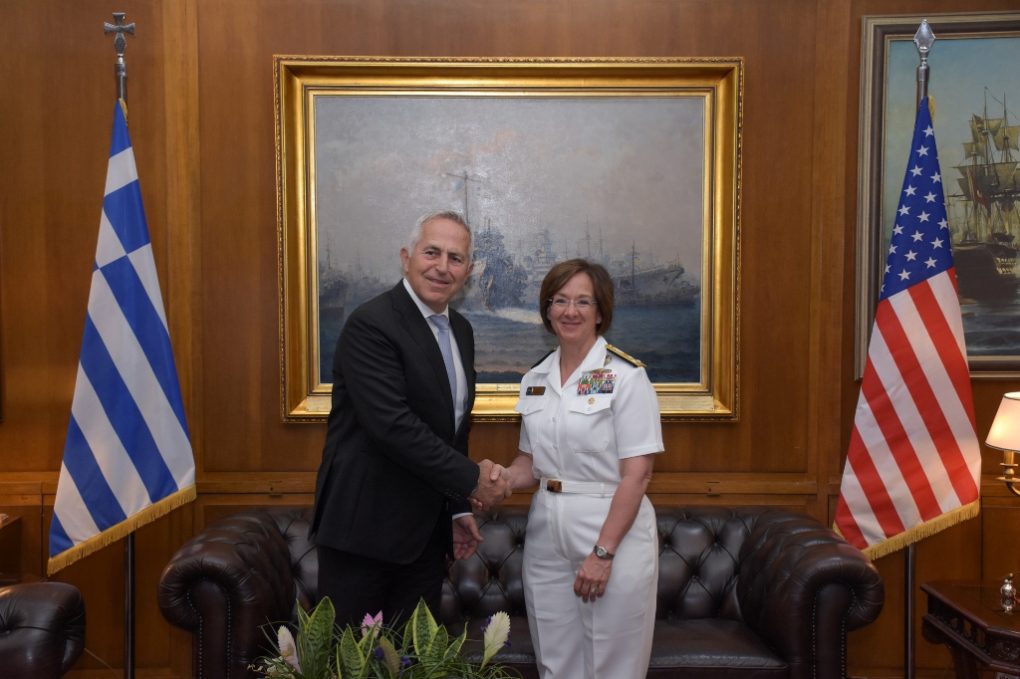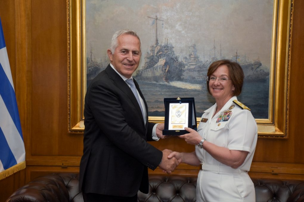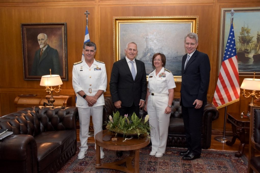 Vice Admiral Lisa M. Franchetti was accompanied by the US Ambassador to Athens Geoffrey Pyatt, while the meeting was also attended by the Chief of Hellenic Navy General Staff.